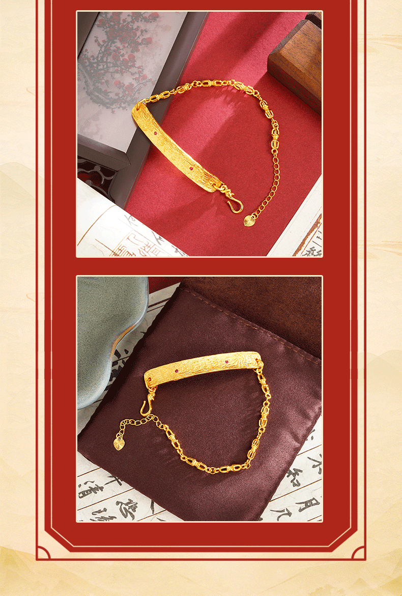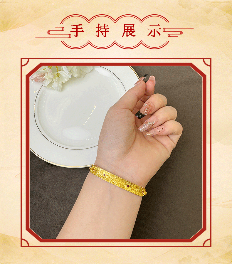 Pulsera de oro de arena vietnamita antigua, nueva línea retro con incrustaciones de estilo chino, media pulsera, sentido de diseño, joyería de nicho que no se desvanece durante mucho tiempo
