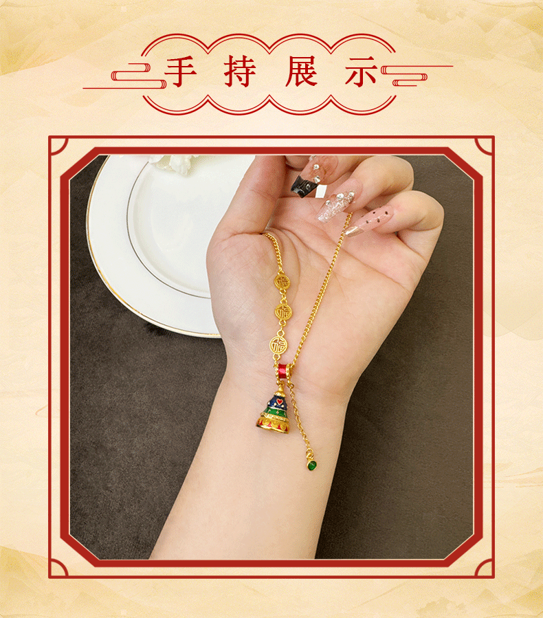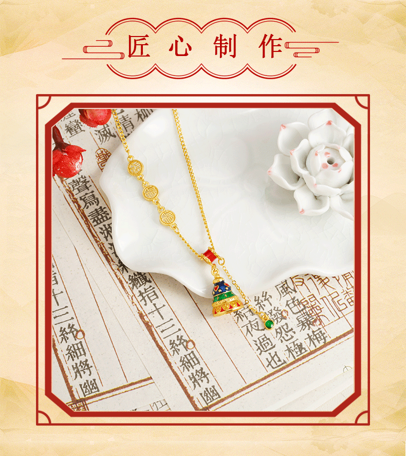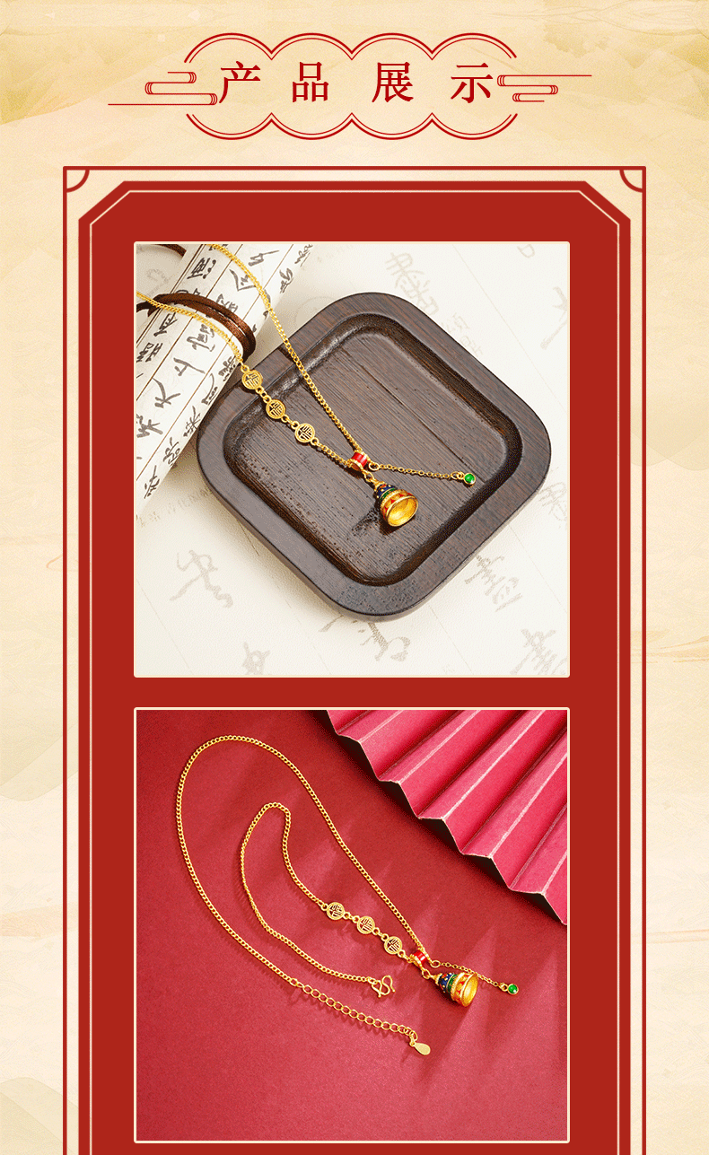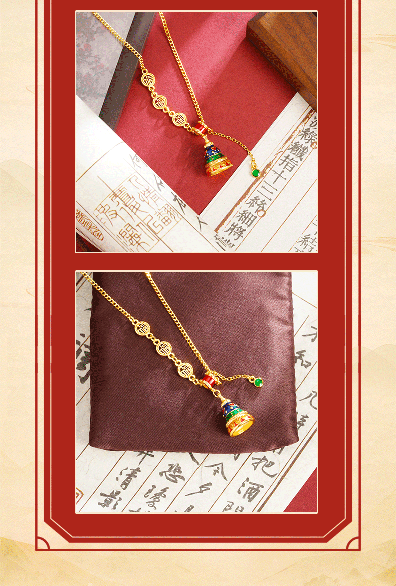 Collar de oro de arena antigua vietnamita, sentido de diseño, esmalte de color, campana, colgante de borla, joyería retro femenina que no se desvanece durante mucho tiempo