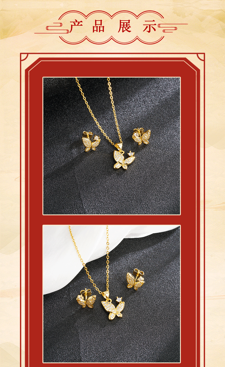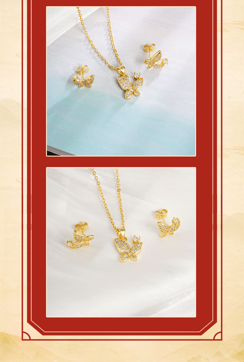 | Colores | Collar de mariposa X2990,Pendientes de mariposa E2538 |
