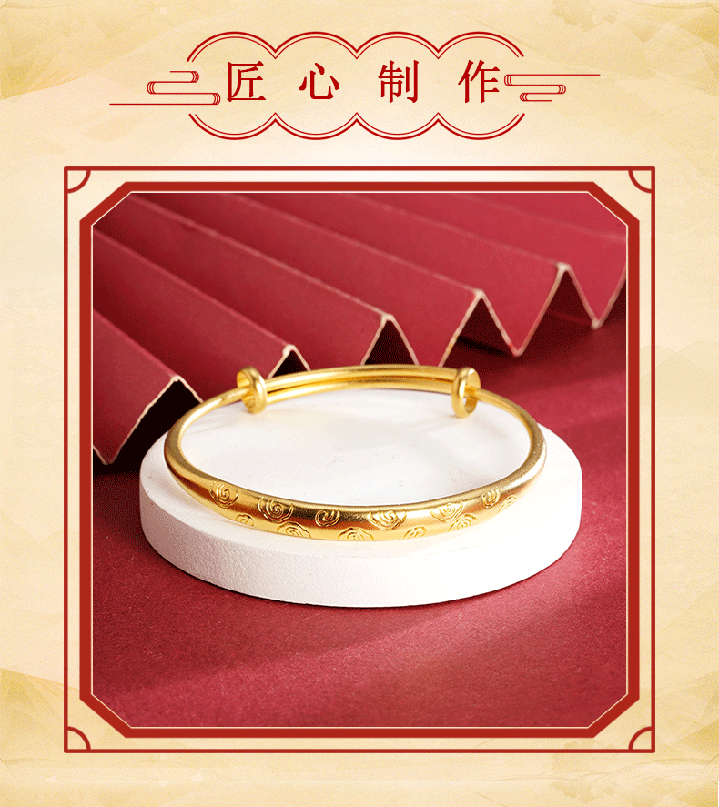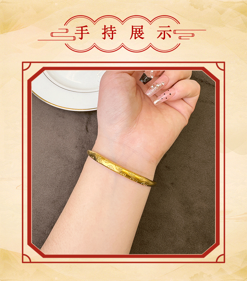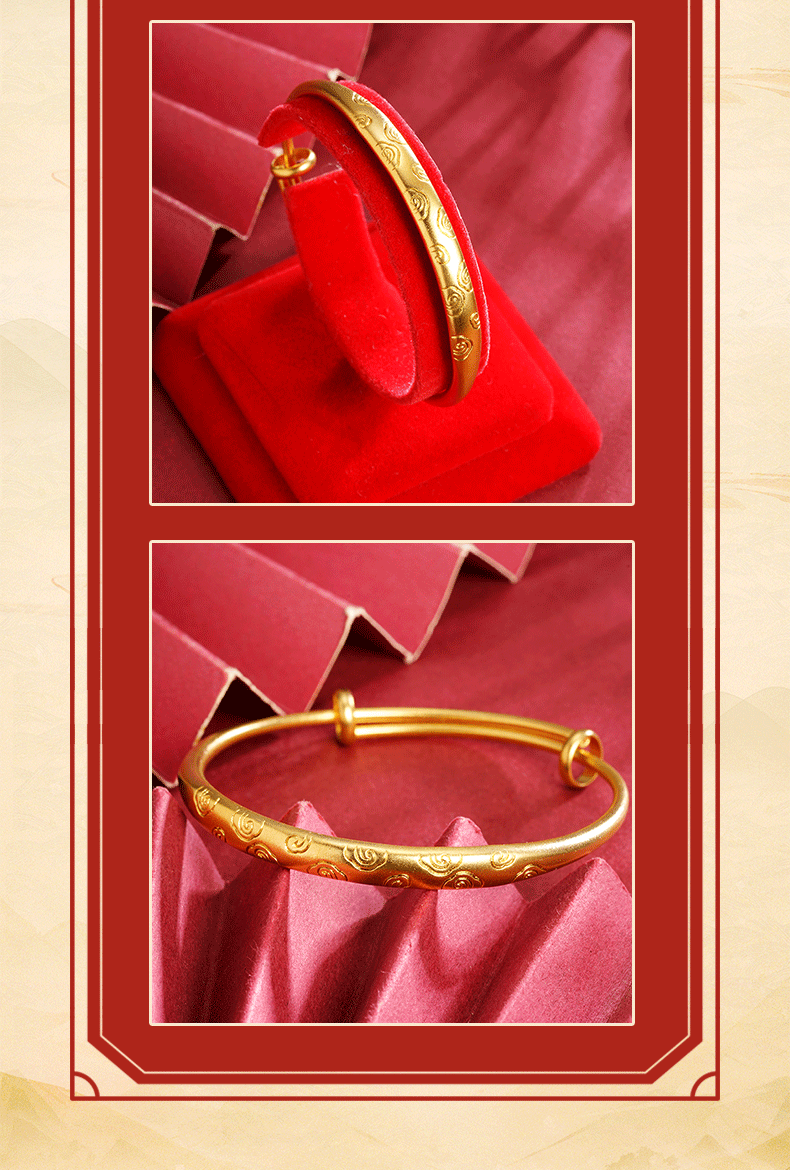 Nueva pulsera de oro de arena antigua china hereda el patrón de nubes auspiciosas, pulsera push-pull, niña, palacio retro, el viento no se desvanece durante mucho tiempo, joyería