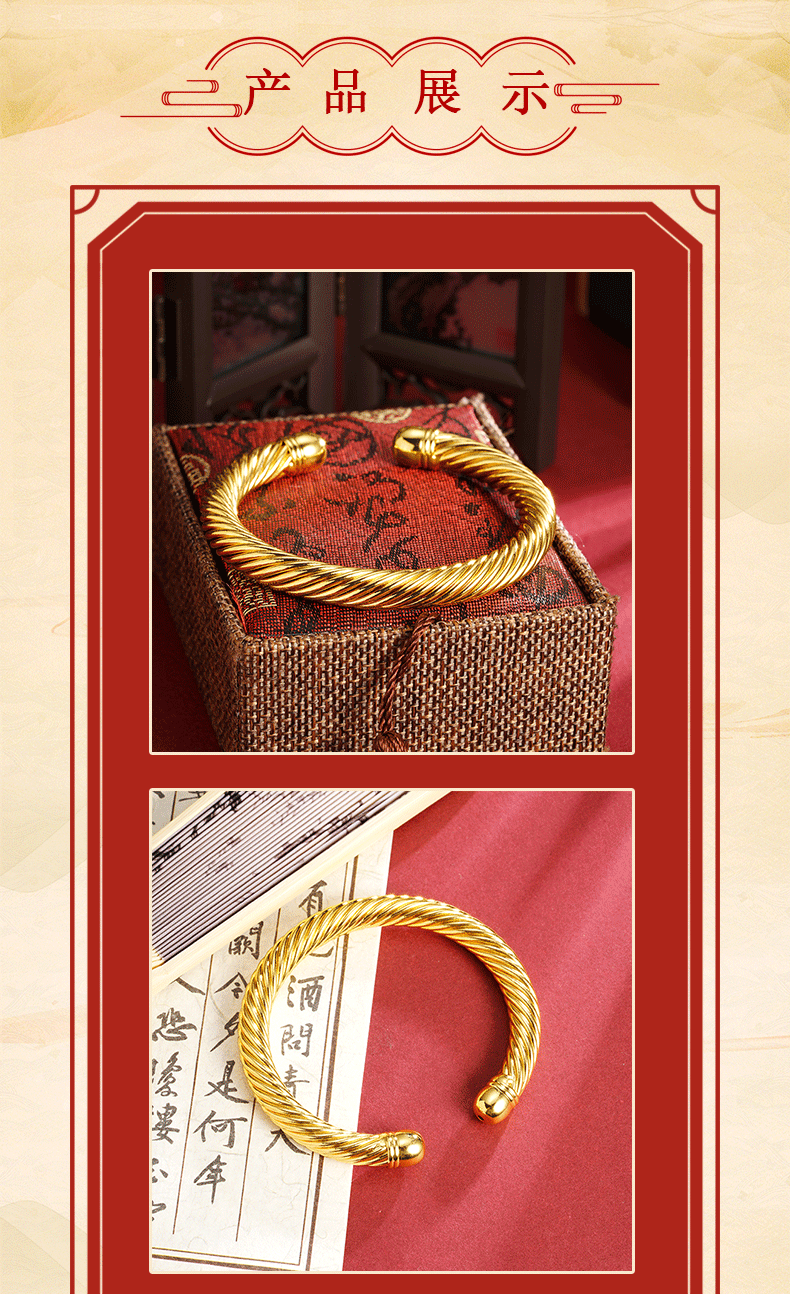 Nueva pulsera de oro de arena antigua, pulsera de apertura de giro retro para mujer, temperamento de alta calidad, joyería que no se desvanece durante mucho tiempo