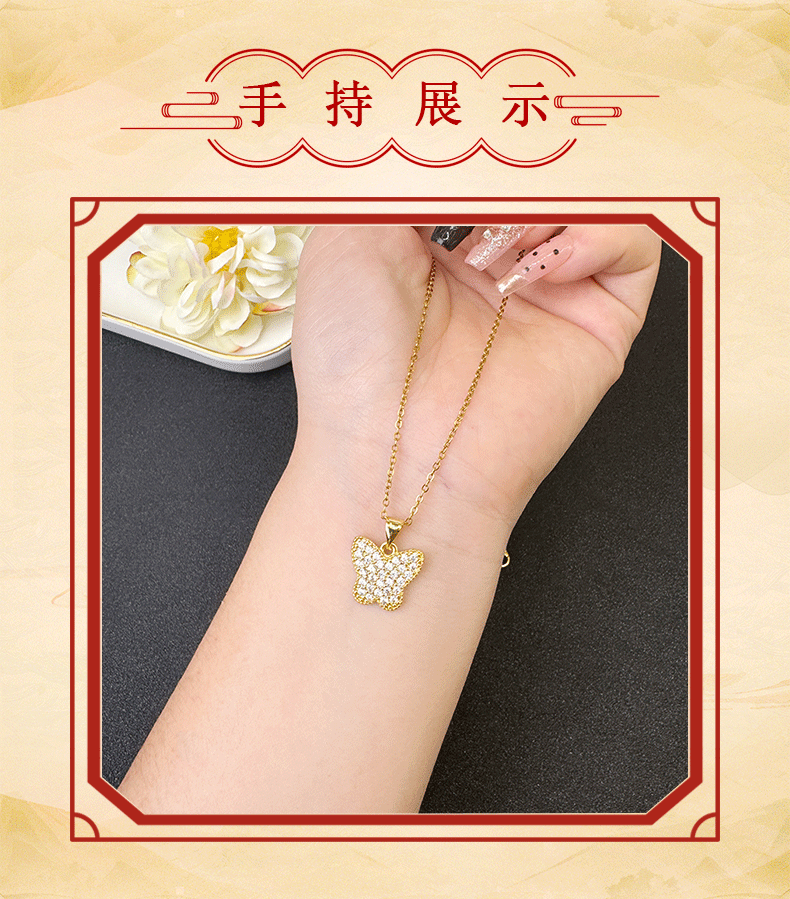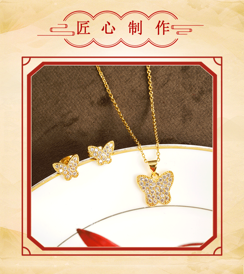 Collar de mariposa de oro de arena vietnamita lleno de pendientes de diamantes moda diseño de todo fósforo ligero lujo durante mucho tiempo conjunto de joyas que no se desvanece