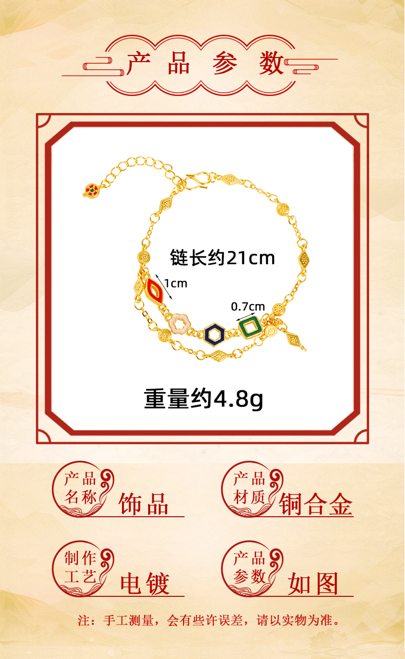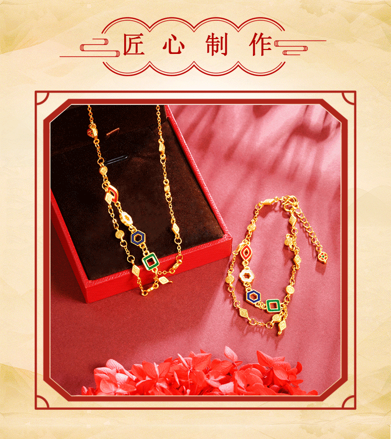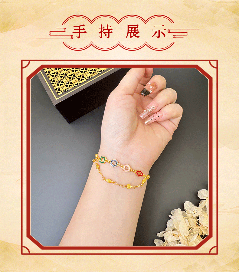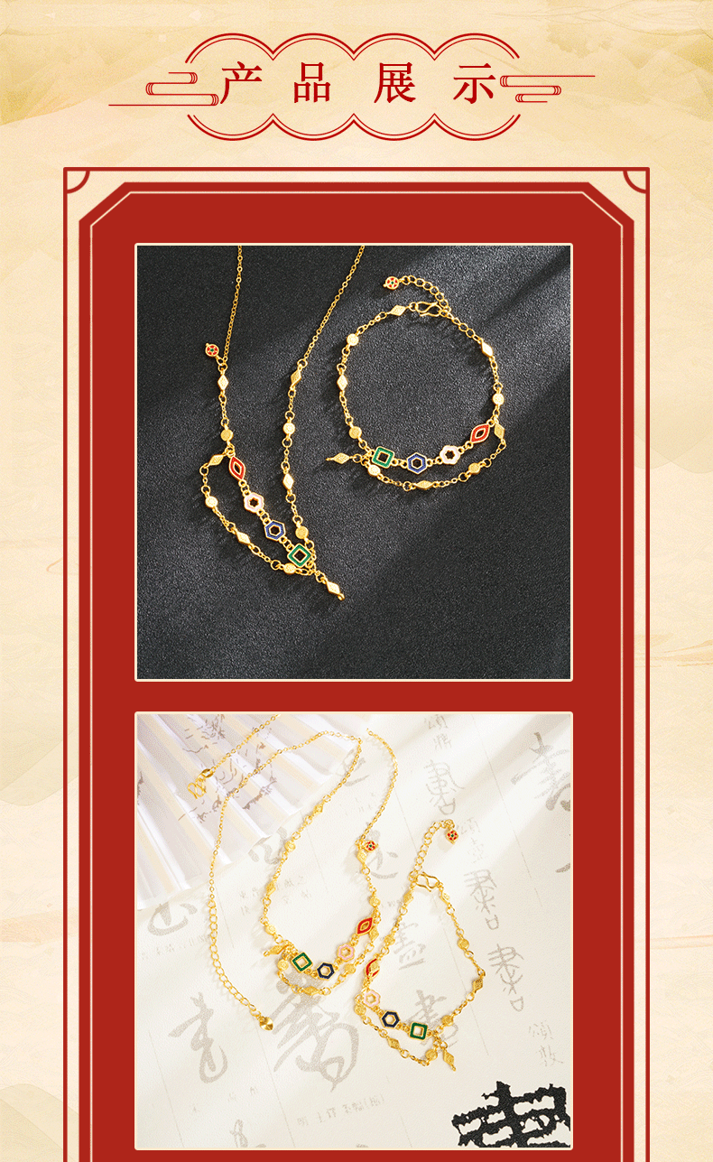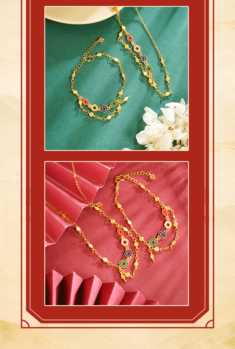 Pulsera de oro de arena antigua, diseño de nicho, cadena de doble capa, collar geométrico de color, joyería retro de larga duración