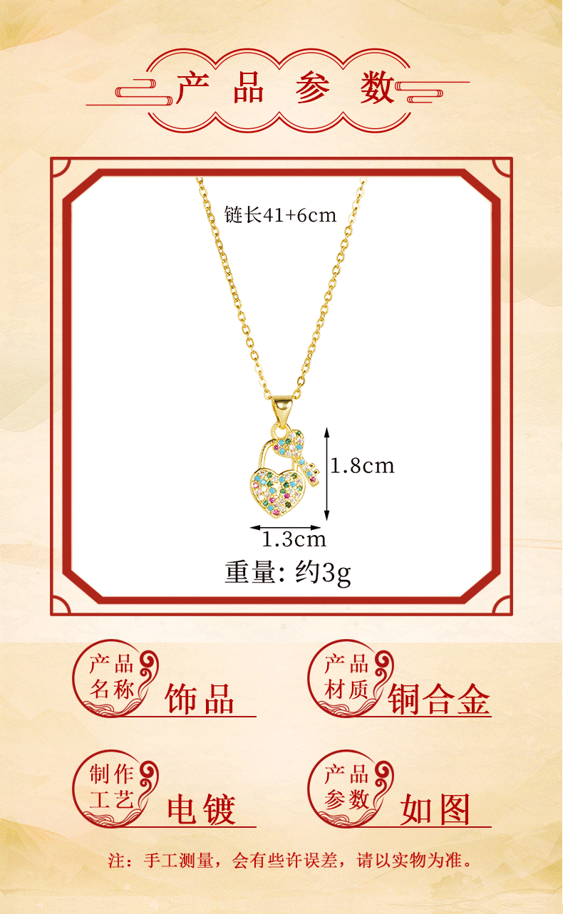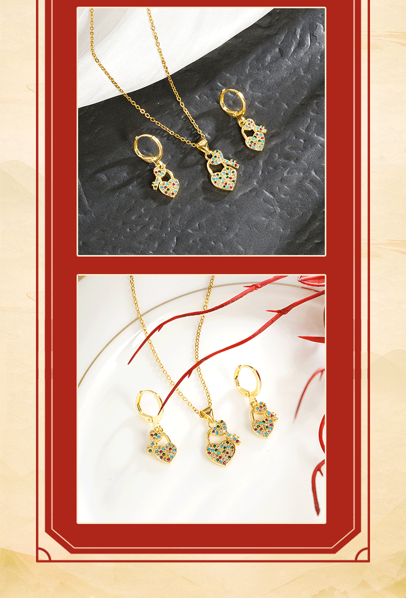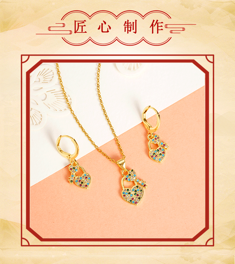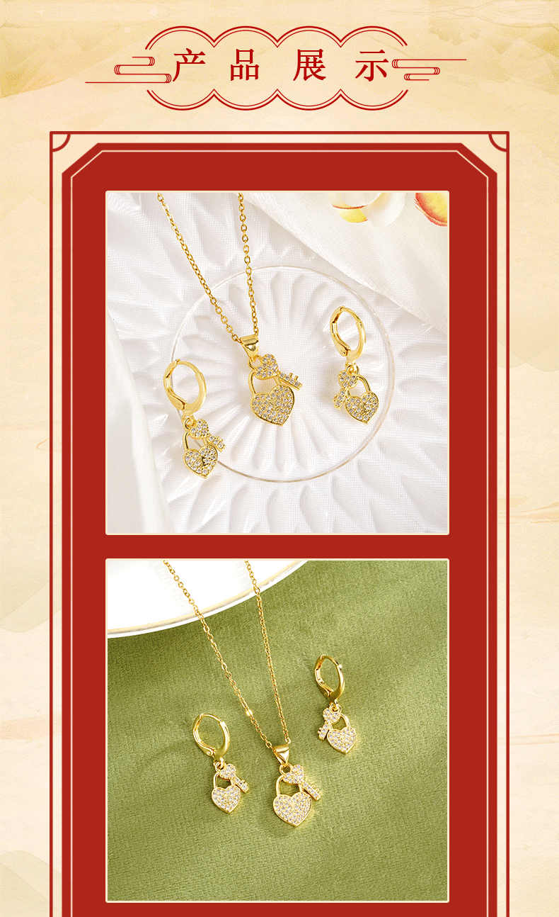 | Colores | X2879 Collar con llave de bloqueo de amor,Collar con llave de bloqueo de color X2880,Pendientes de llave de bloqueo de amor de color E2426,Pendientes de llave de bloqueo de amor E2427 |
