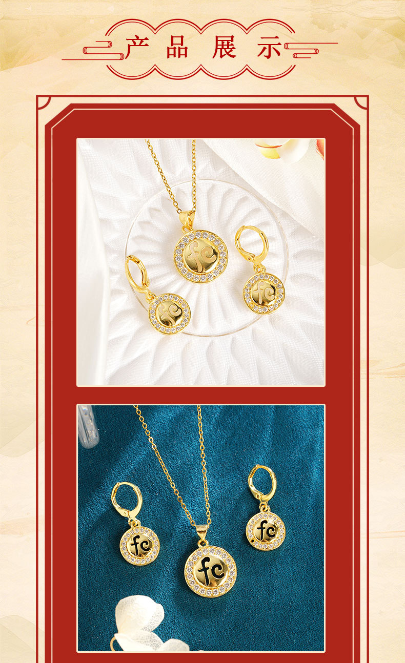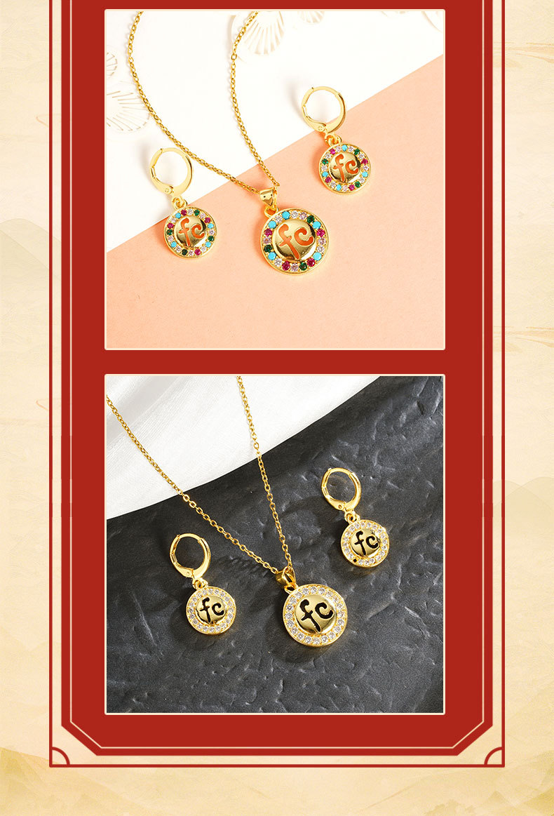 Nuevo estilo antiguo arena y oro estilo europeo y americano con incrustaciones de diamantes, collar de letras redondas, conjunto de pendientes, lujo ligero, joyería de alta gama de nicho