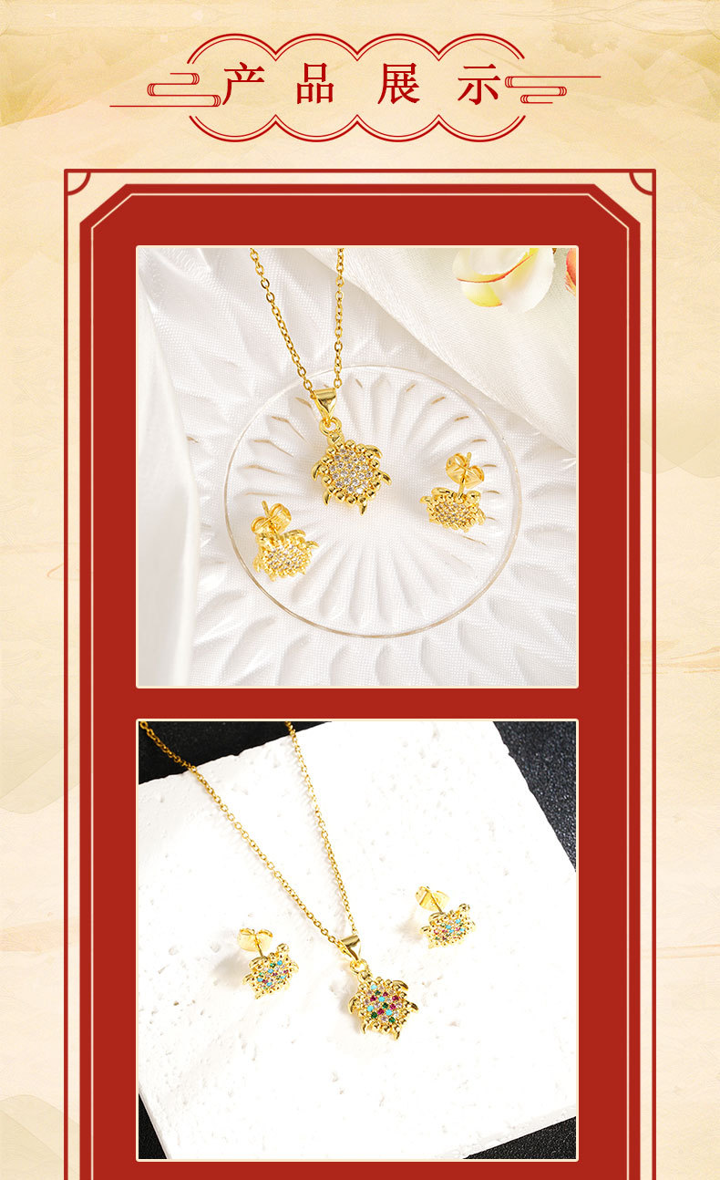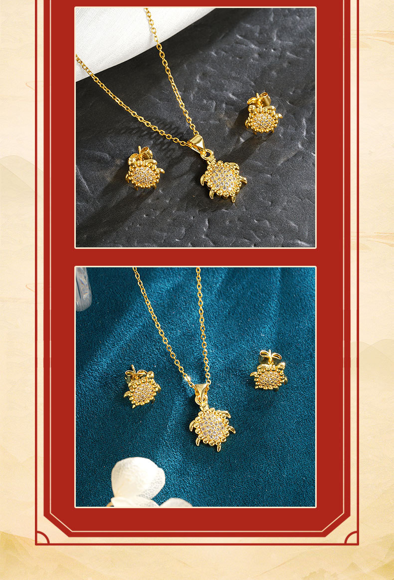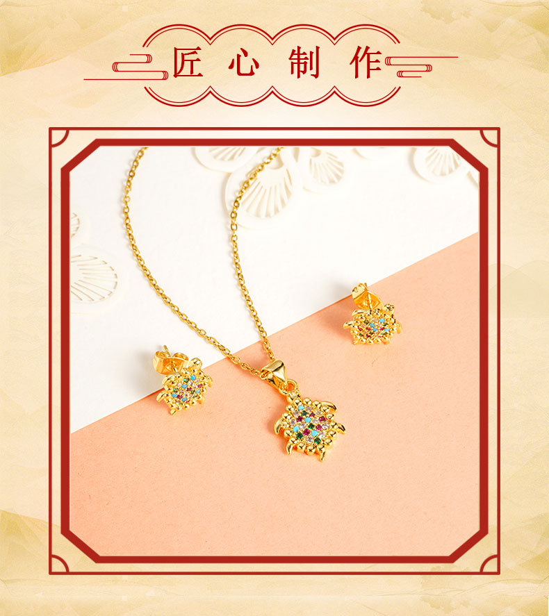Temperamento de oro de arena vietnamita, lujo ligero, micro incrustaciones de diamantes, exquisito collar de tortuga, pendientes, joyería de moda femenina al por mayor