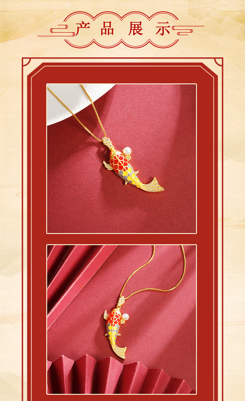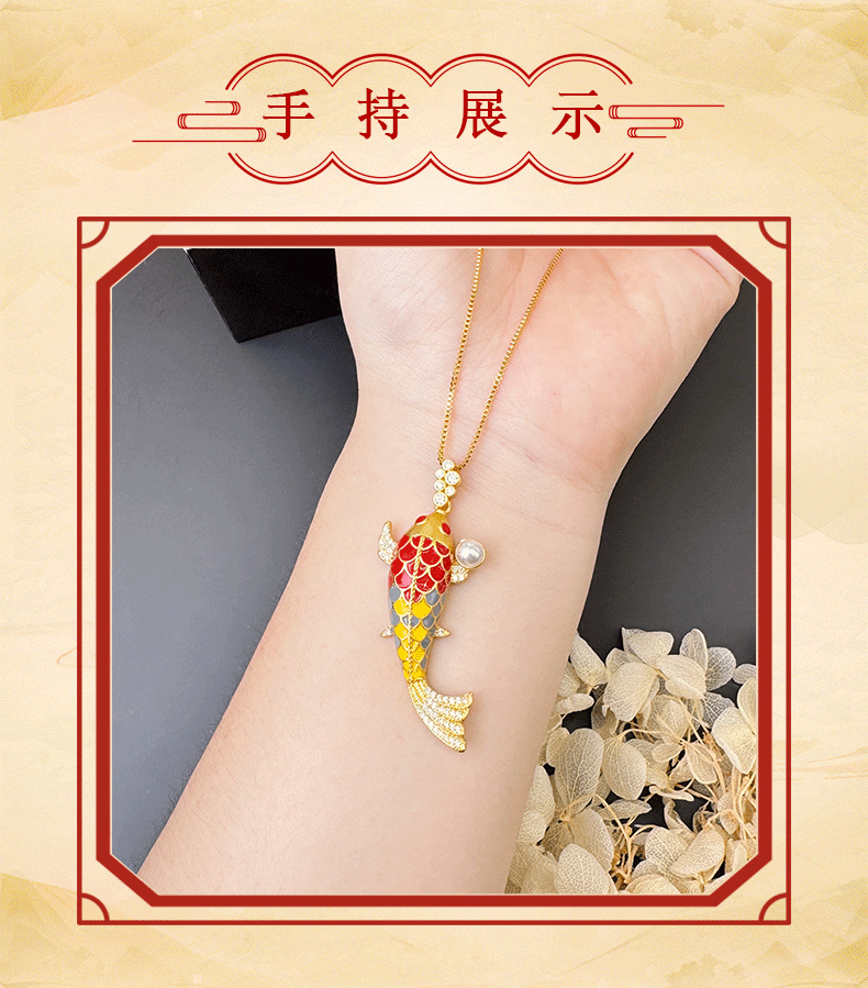 Colgante de koi azul quemado con diamantes de oro de arena vietnamita para mujeres