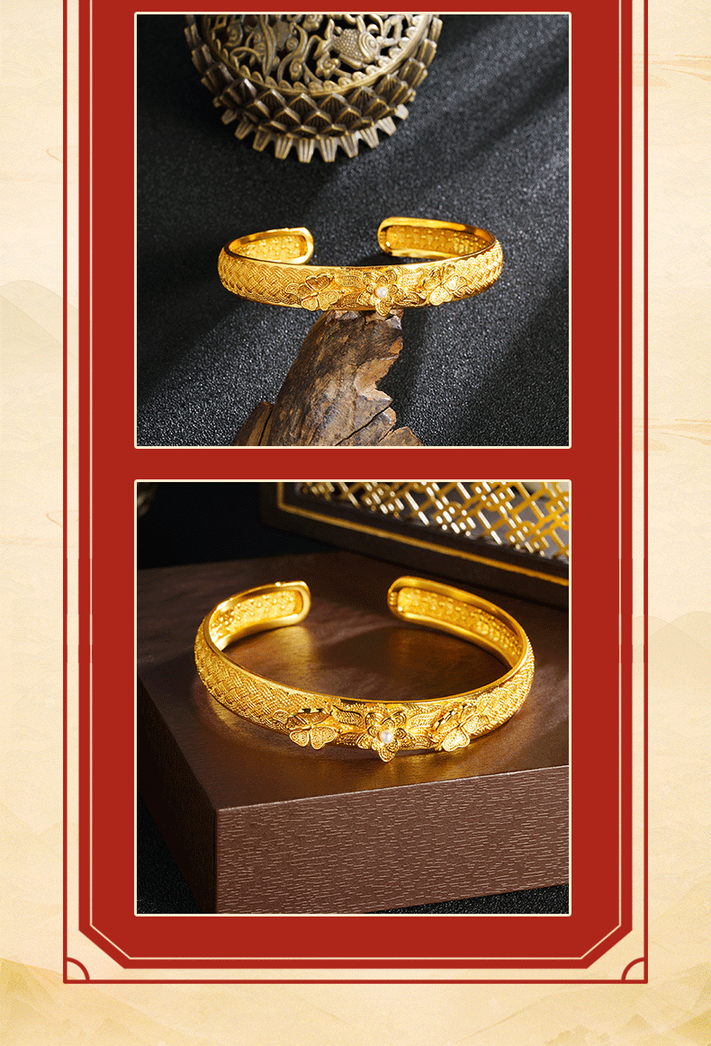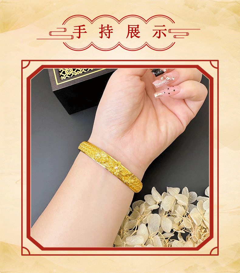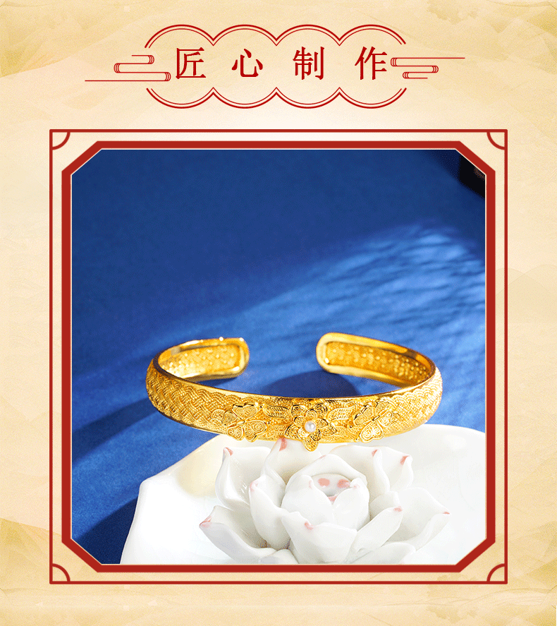 Antigua pulsera de bendición de loto clásico chino de oro de arena, pulsera de lujo ligero de temperamento de alta gama para mujer