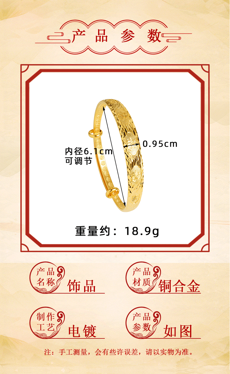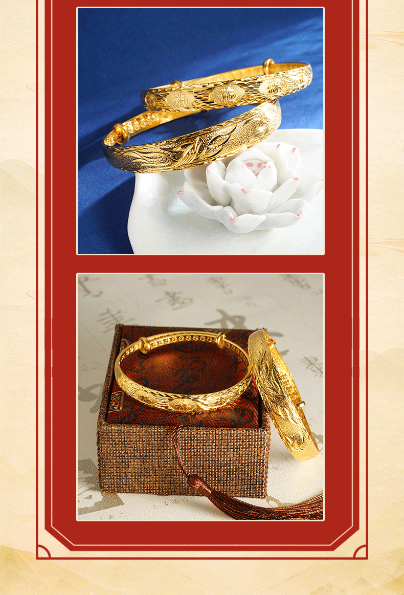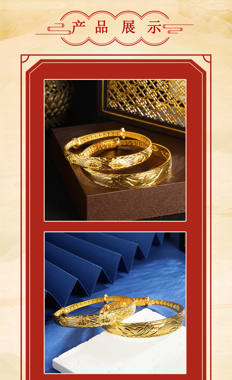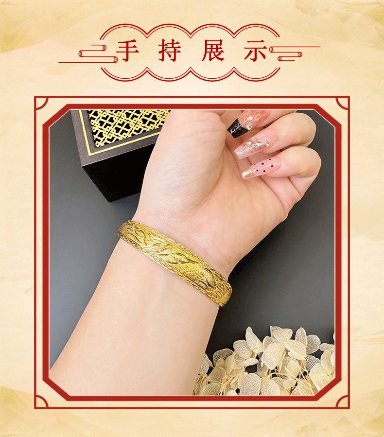 Pulsera de oro de arena vietnamita imitación oro Phoenix Fu palabra pull-pull estilo femenino durante mucho tiempo no se desvanece joyería retro de alta gama