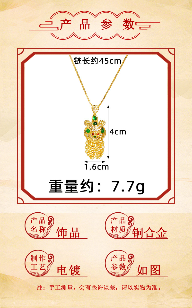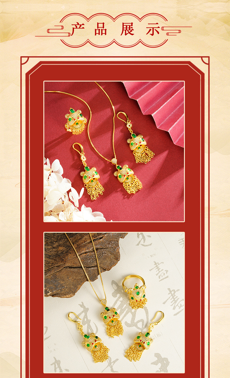 | Colores | Pendientes de danza del león E2375,Collar de danza del león X2678,J23553 Anillo de danza del león |