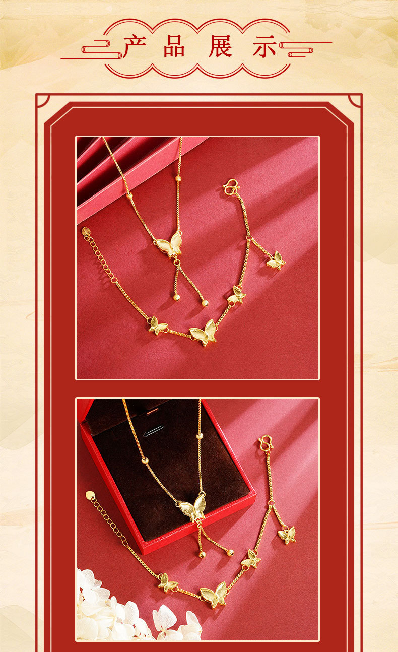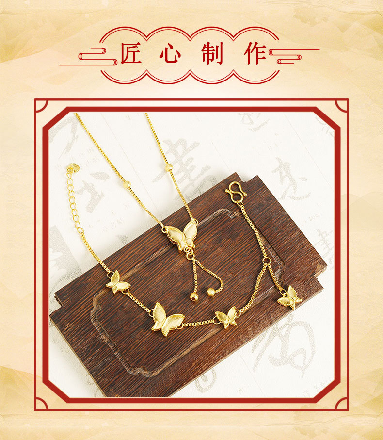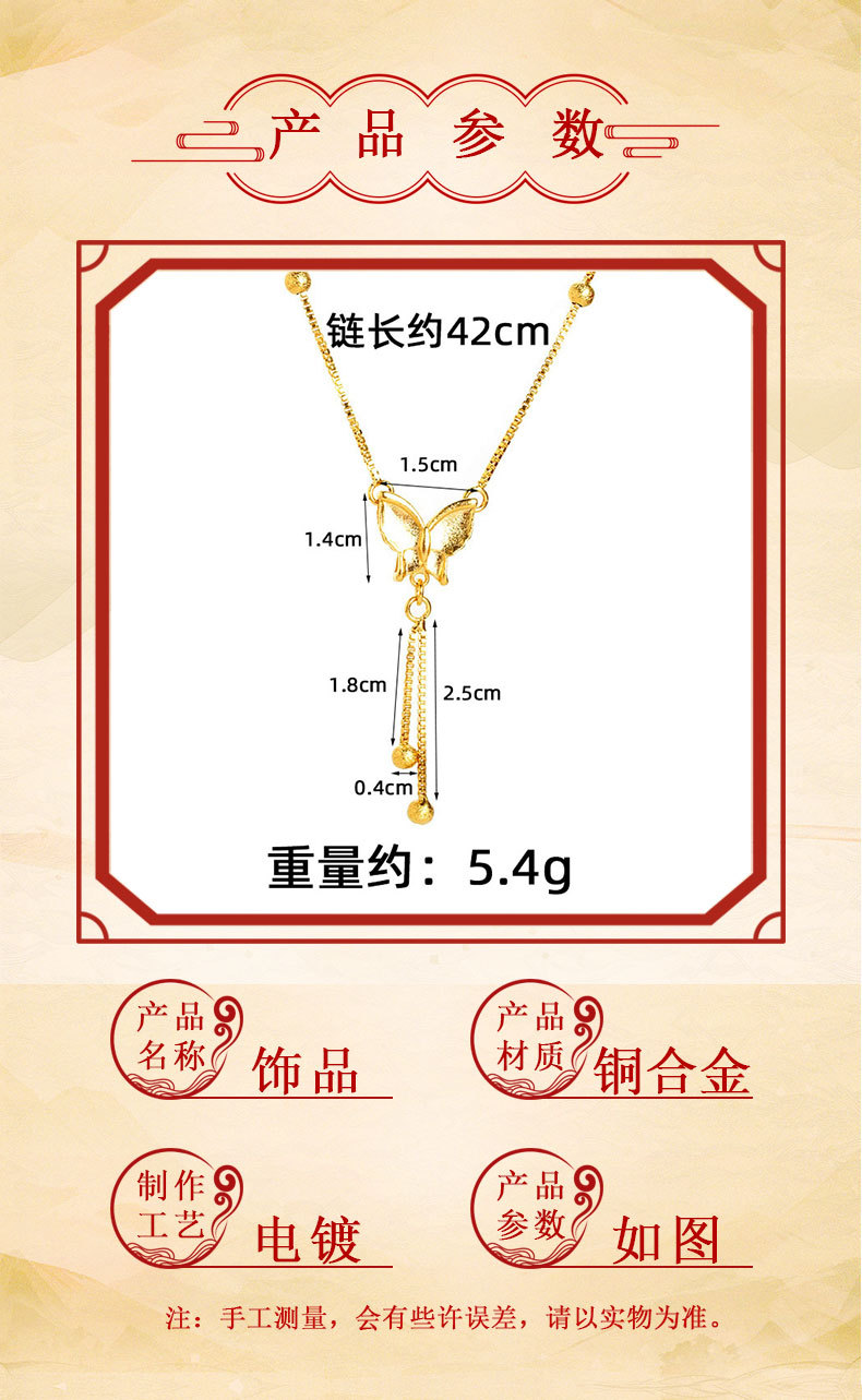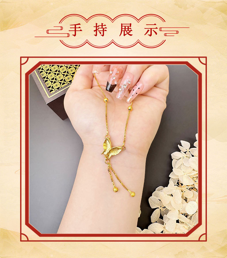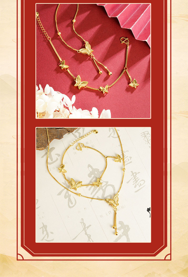 Nueva pulsera de collar de oro de arena de mariposa con flecos exquisitos, temperamento, joyería de diseño de lujo ligero, no se desvanecerá durante mucho tiempo