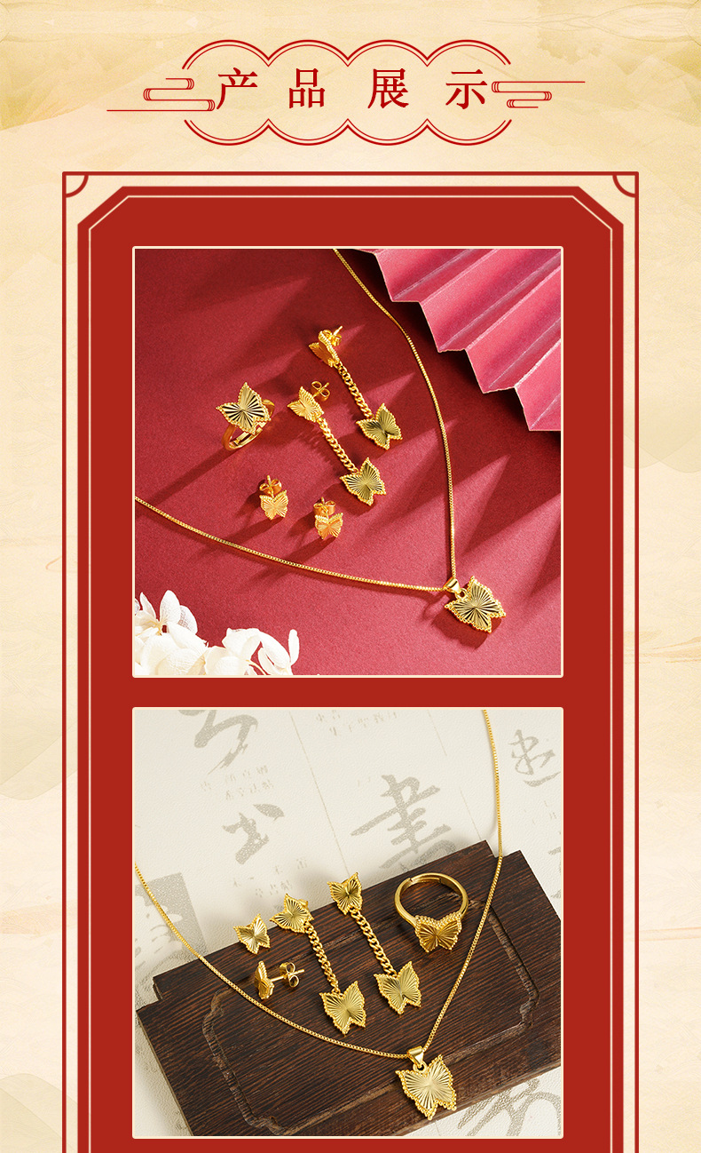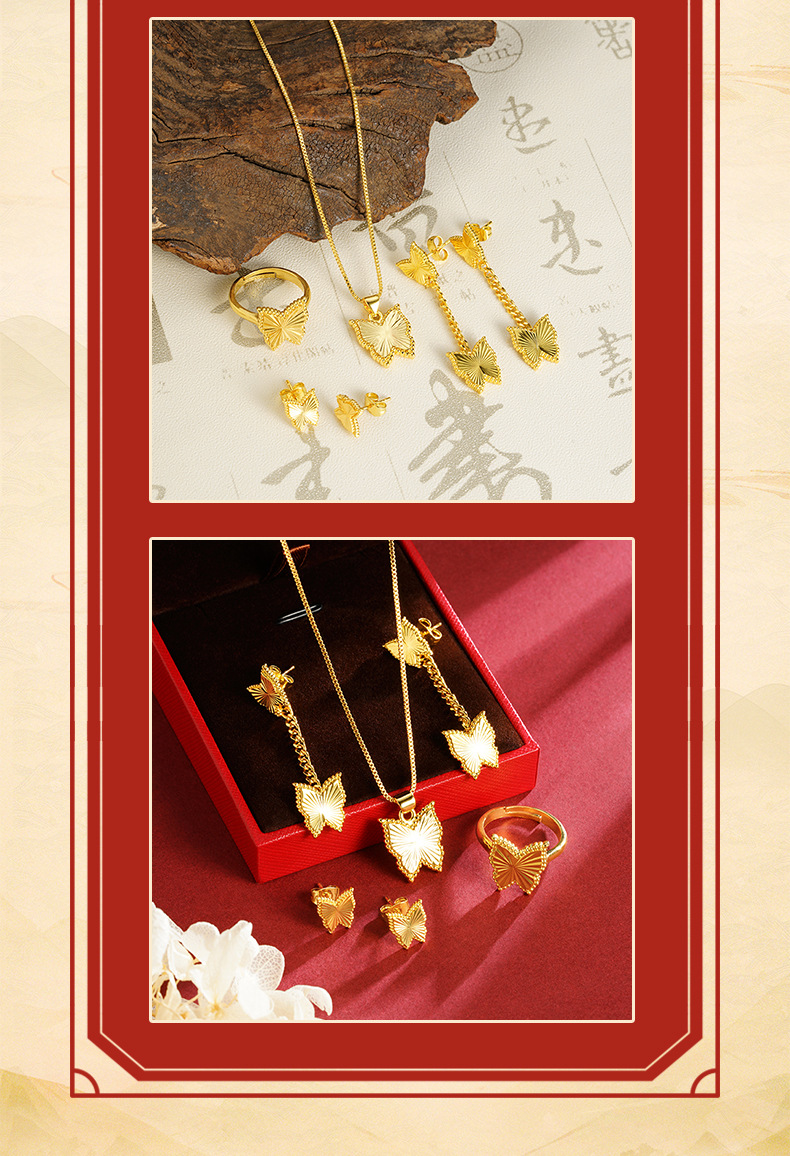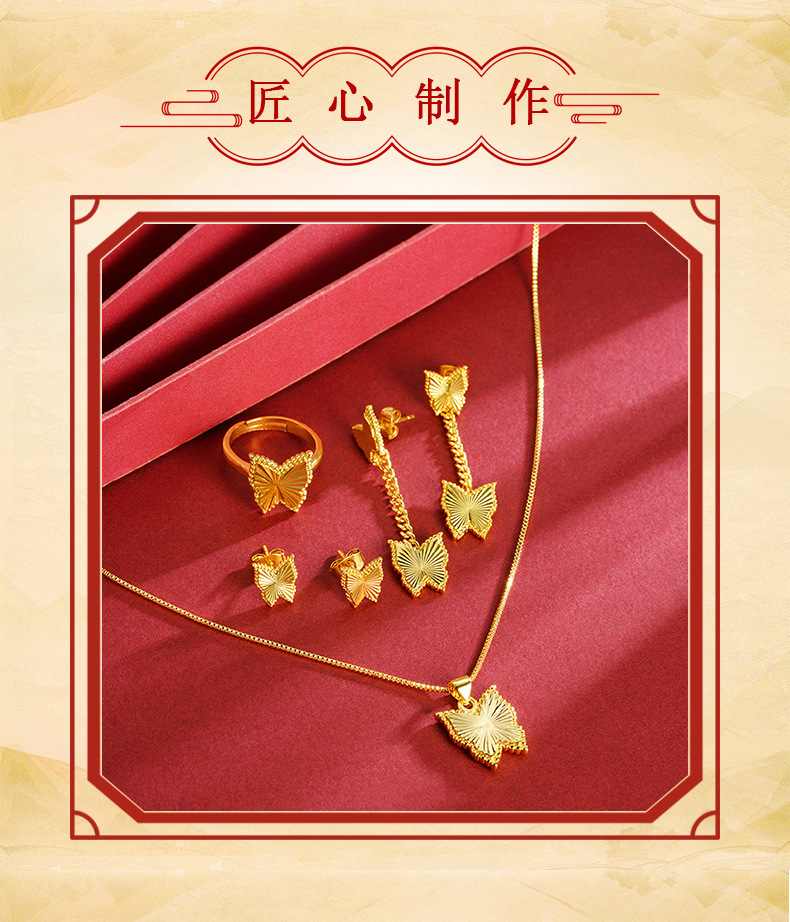 Collar de oro de arena vietnamita, mariposa láser, moda femenina, anillo de combinación de lujo ligero, pendientes de todo fósforo, traje de temperamento elegante