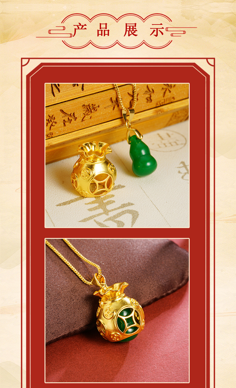 Antigua ley vietnamita arena dorada bolsa de la suerte colgante de calabaza mujeres retro estilo nacional viento largo no se desvanece fábrica de joyas al por mayor