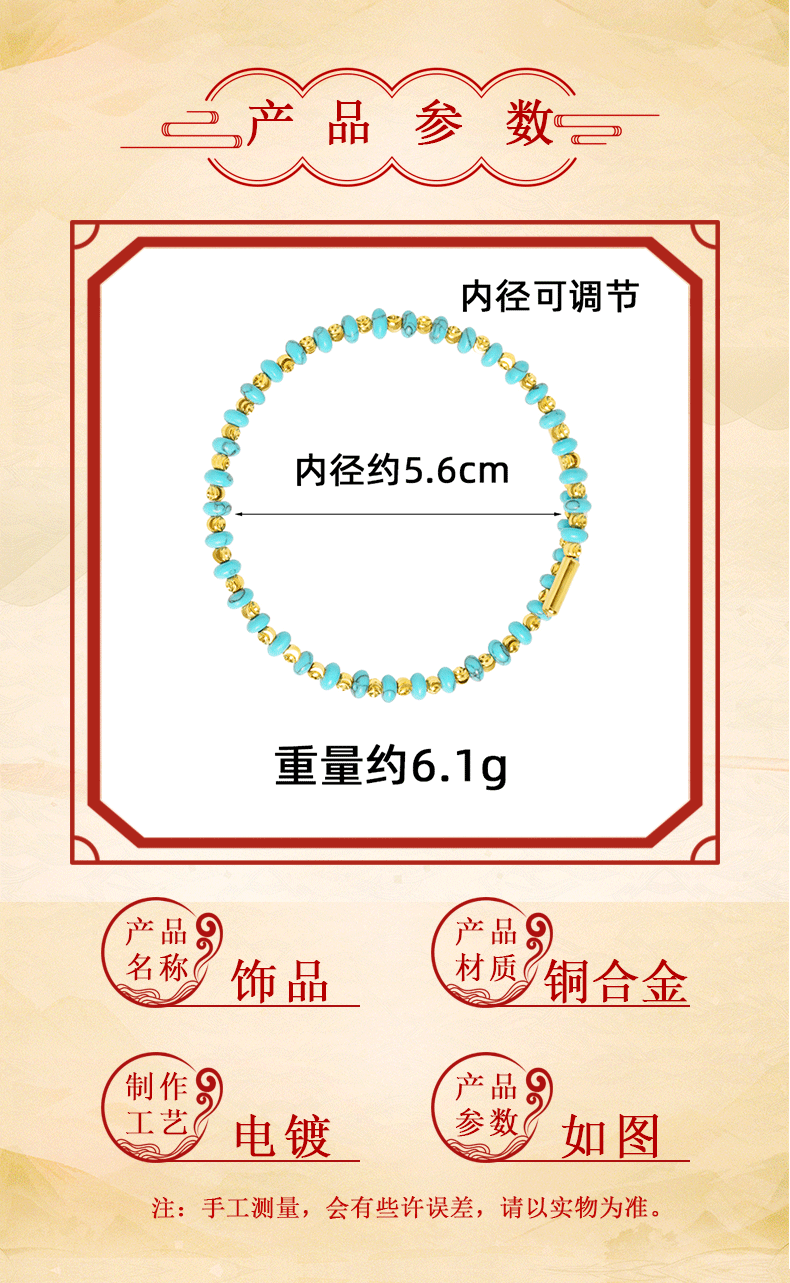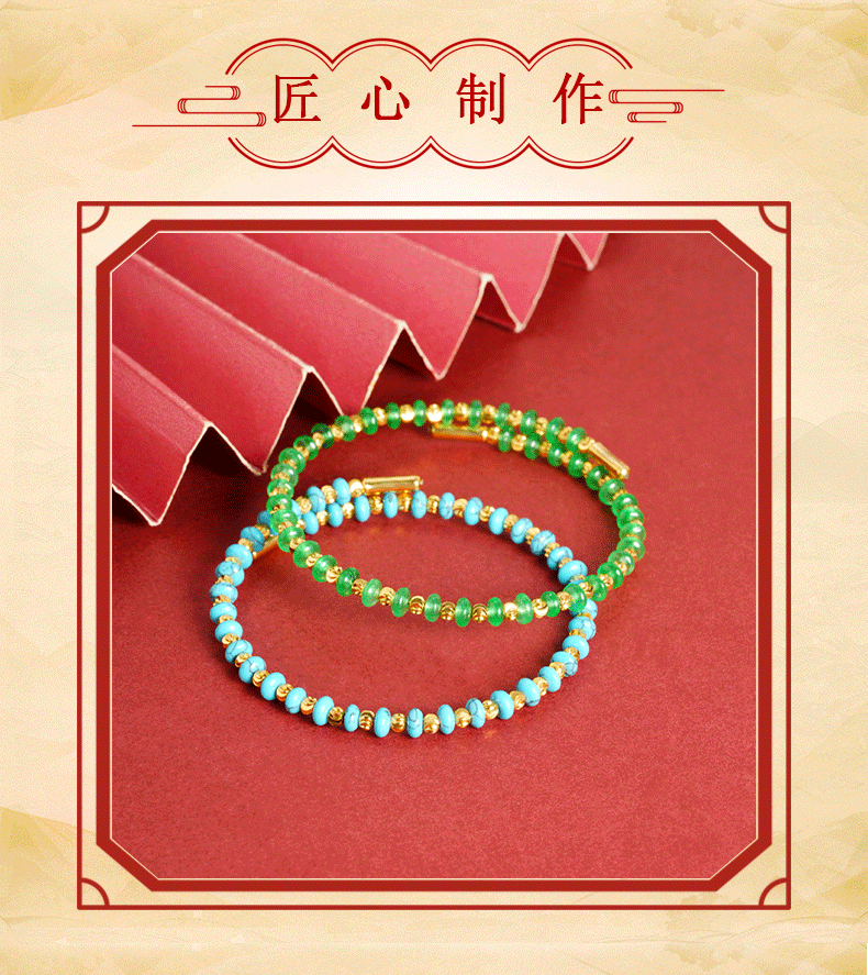 La nueva pulsera con cuentas de arroz turquesa de estilo bohemio de nicho de método antiguo de oro de arena vietnamita no se desvanecerá durante mucho tiempo