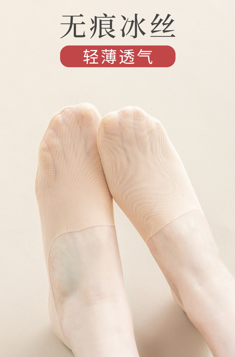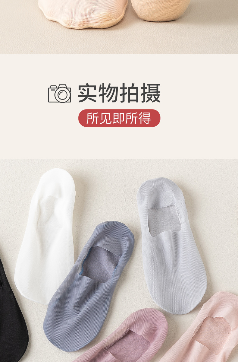 Calcetines de barco para mujeres antideslizantes de verano calcetines invisibles delgadas de seda de hielo mallas transpirables calcetines superficiales Zhuhai al por mayor