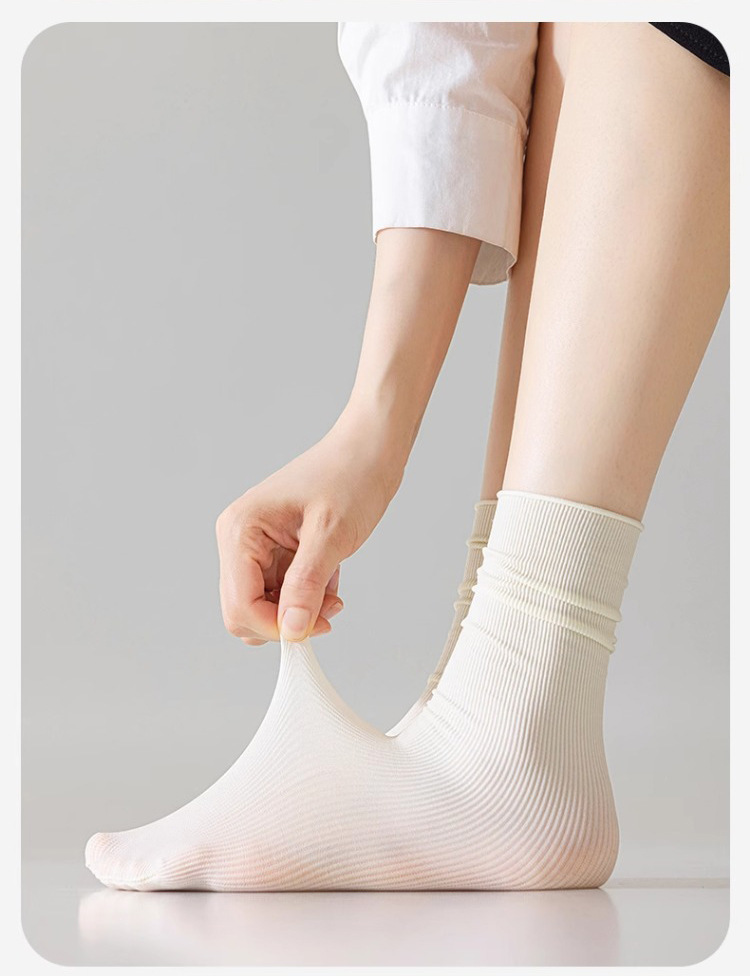 Calcetines de hielo para mujer, calcetines de tubo medio antibacterianos transpirables finos de verano, calcetines de pila cerosos suaves de terciopelo de seda anti-gancho, calcetines de mujer de todo fósforo