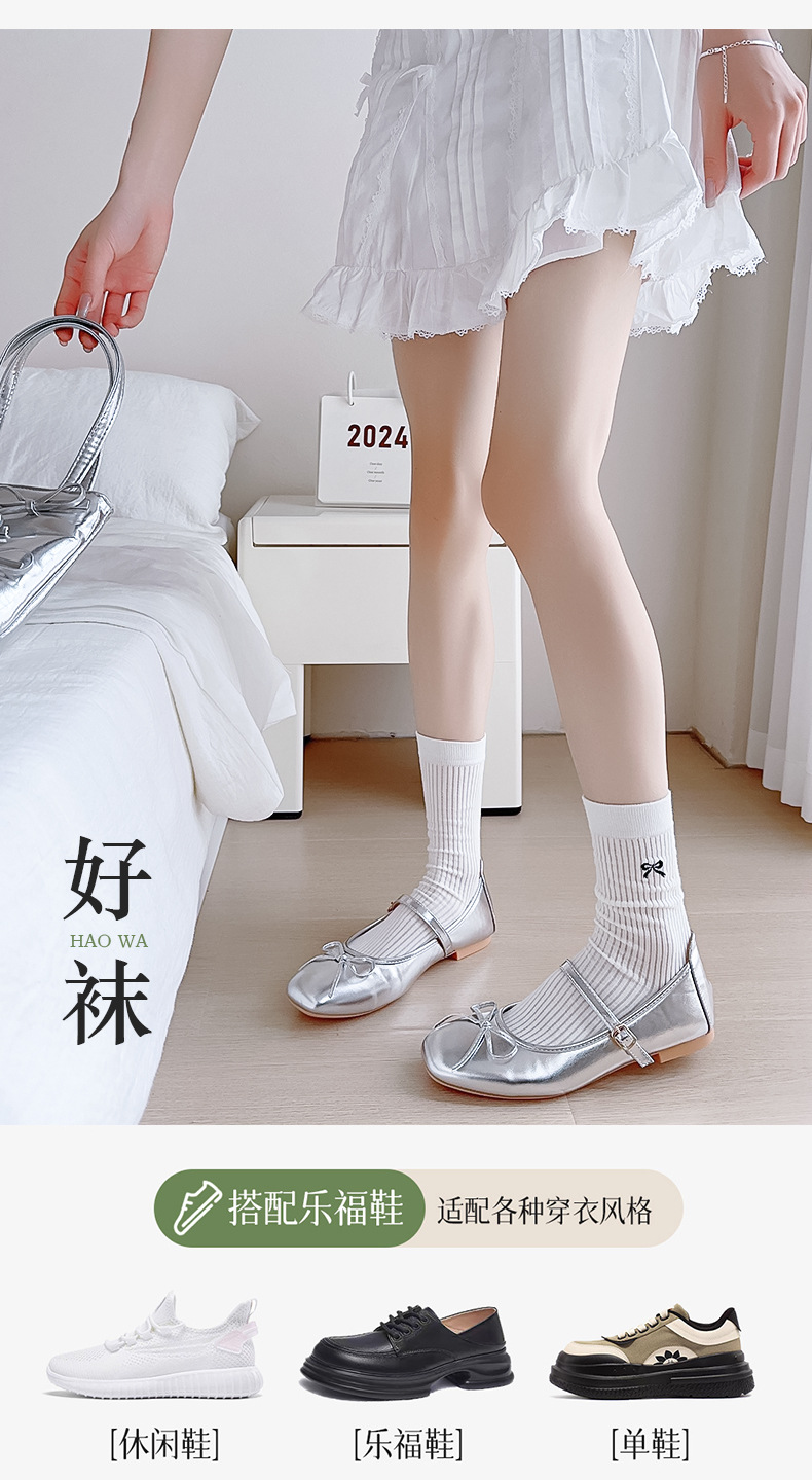 Calcetines de ballet de mujer primavera y verano, algodón japonés bordado, arco, calcetines de pila, Zhuhai al por mayor