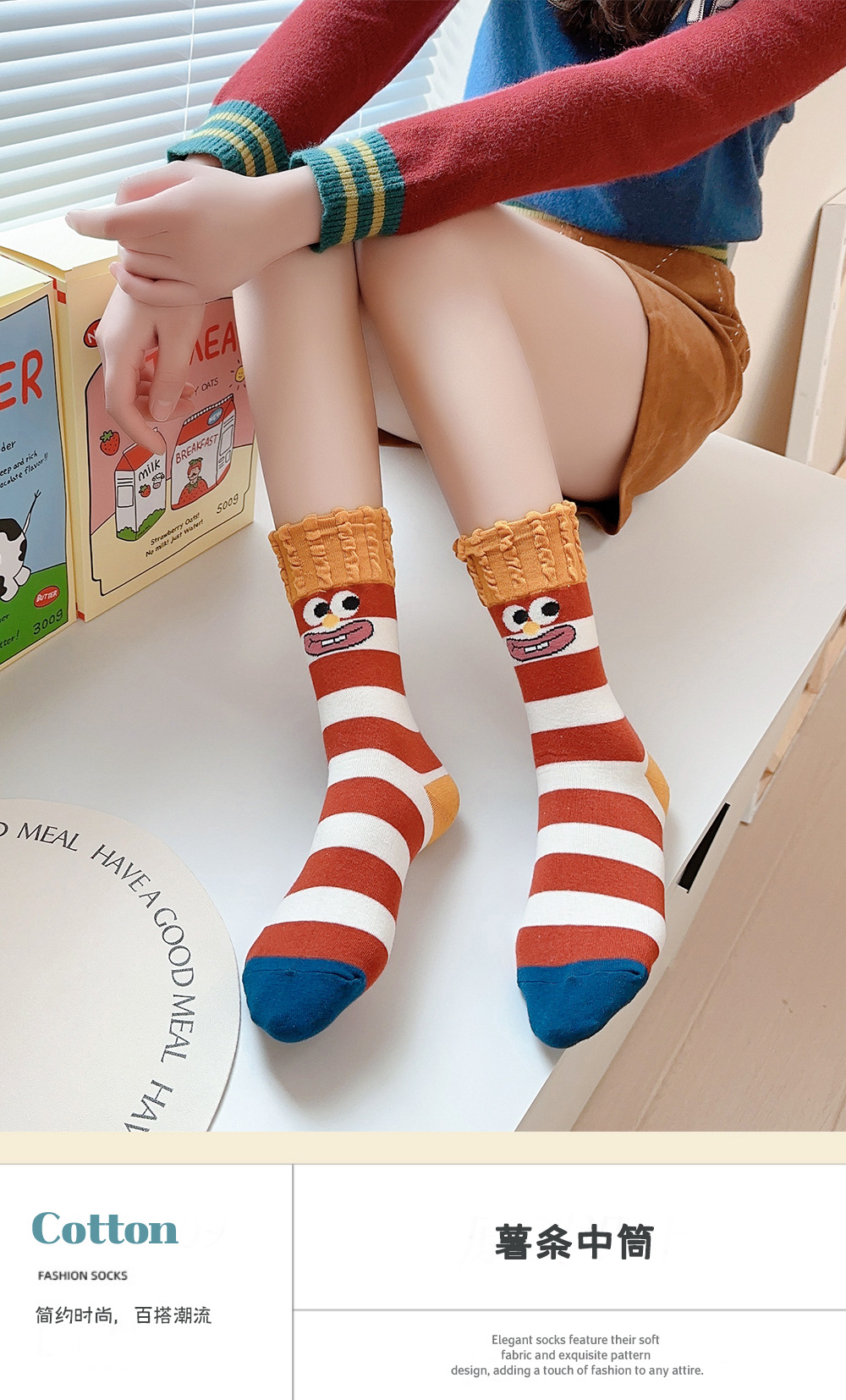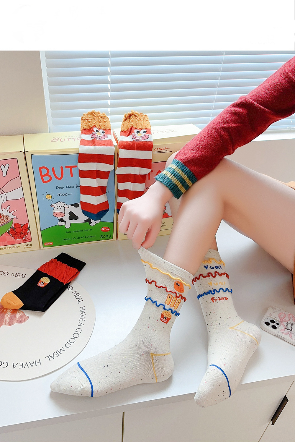 Calcetines de patatas fritas, calcetines de algodón de otoño y invierno con zapatos burkin extraños, calcetines de mujer encantadoras, calcetines de tendencia generales