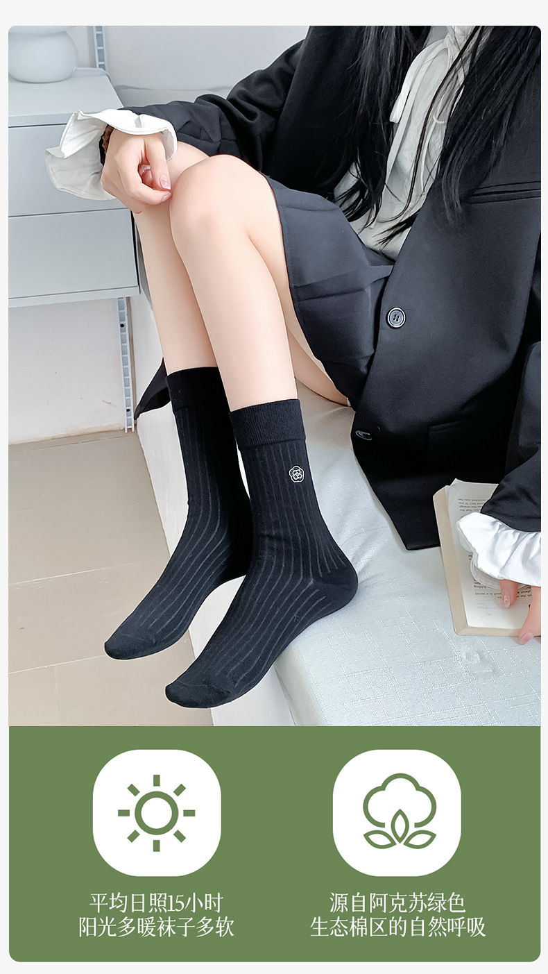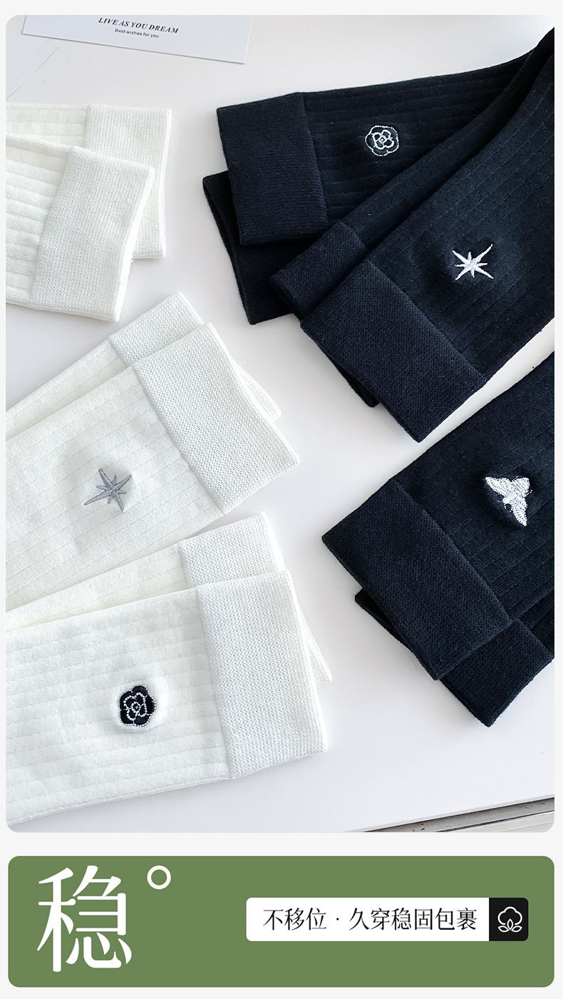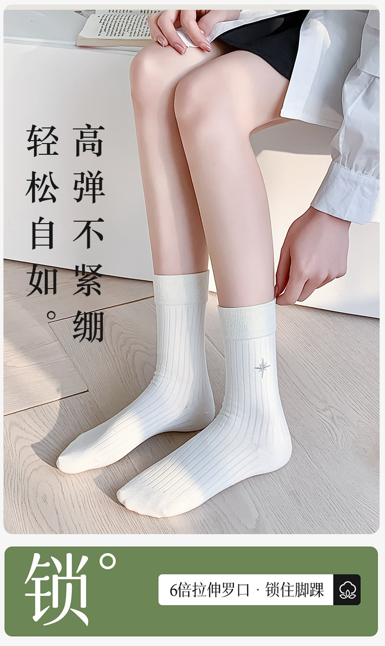 Calcetines de verano para mujeres de color sólido simple patrón de bordado mediano calcetines de algodón transpirable calcetines de mujer Zhuhai al por mayor