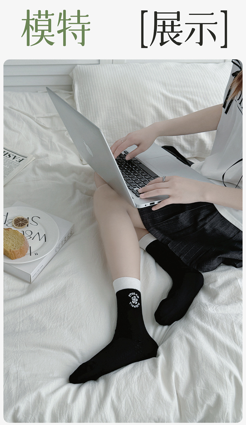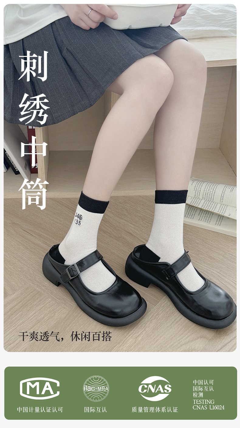 Calcetines de verano para mujeres delgadas mallas transpirables bordadas medias medias medias medias negras y blancas color combinado versátil calcetines de mujer Zhuhai al por mayor