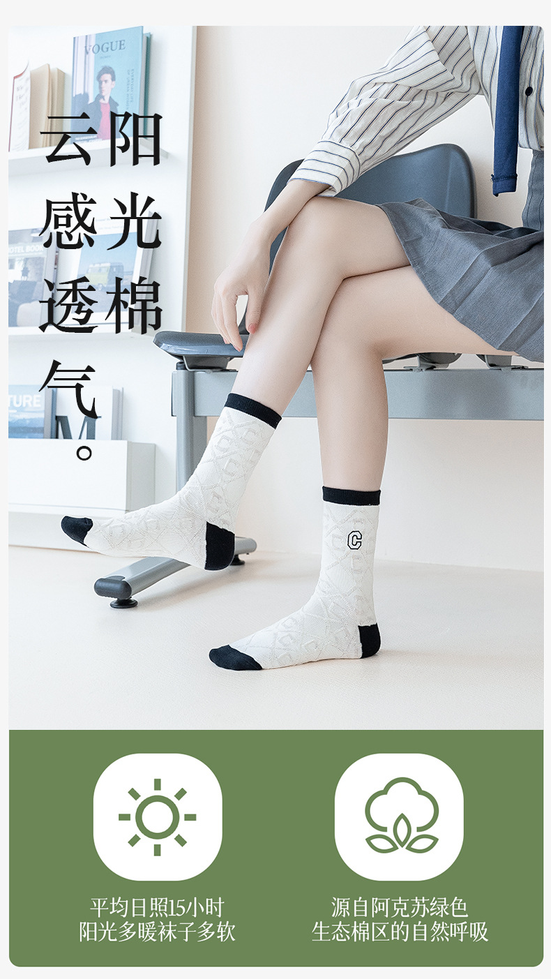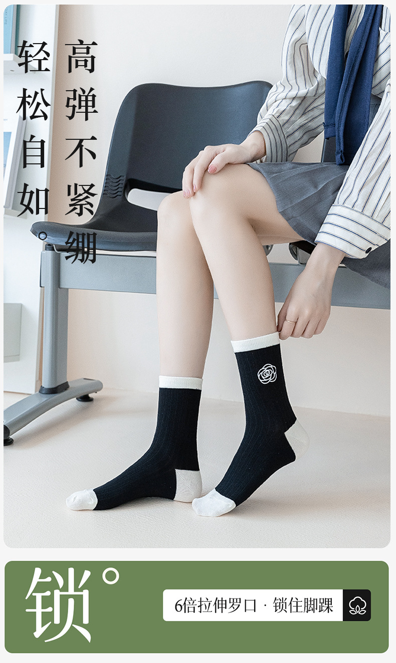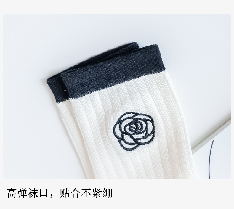 Medias negras y blancas de verano delgadas bordadas camélia letras medianas medias anti-balling medias de mujer Zhuangyan al por mayor