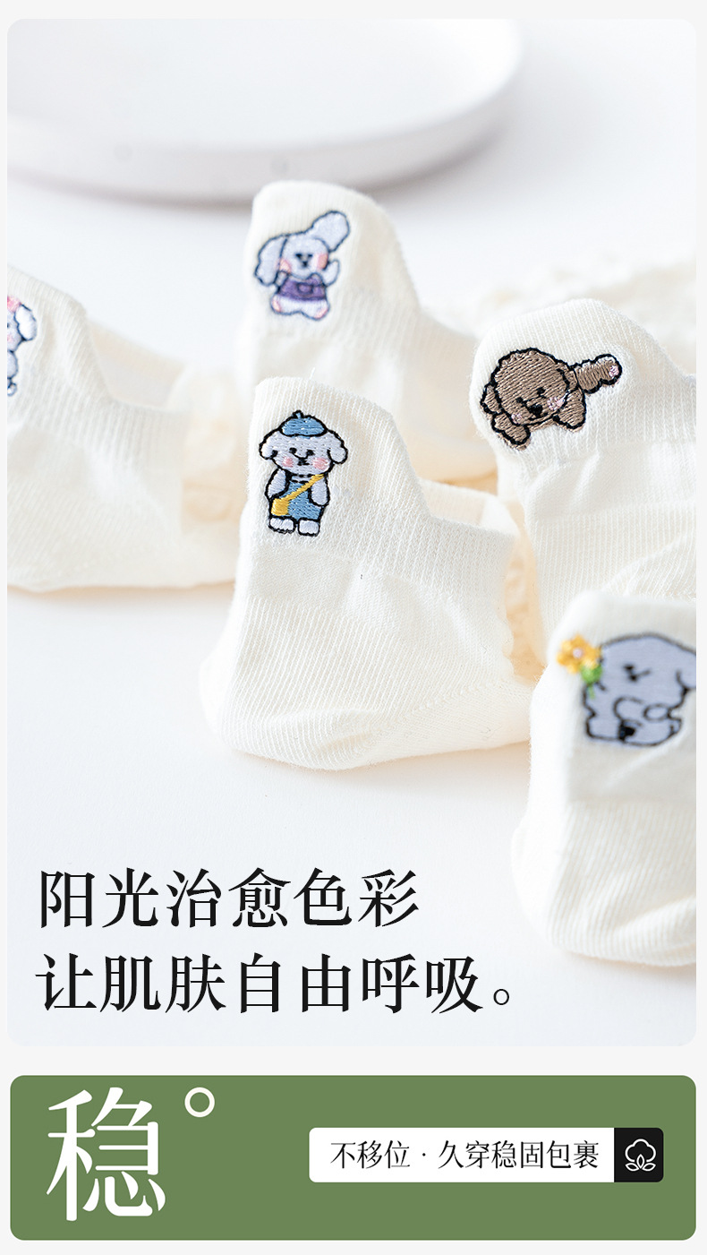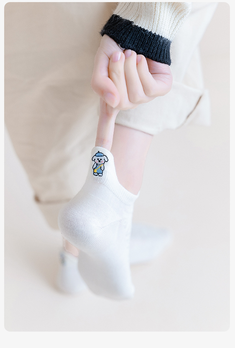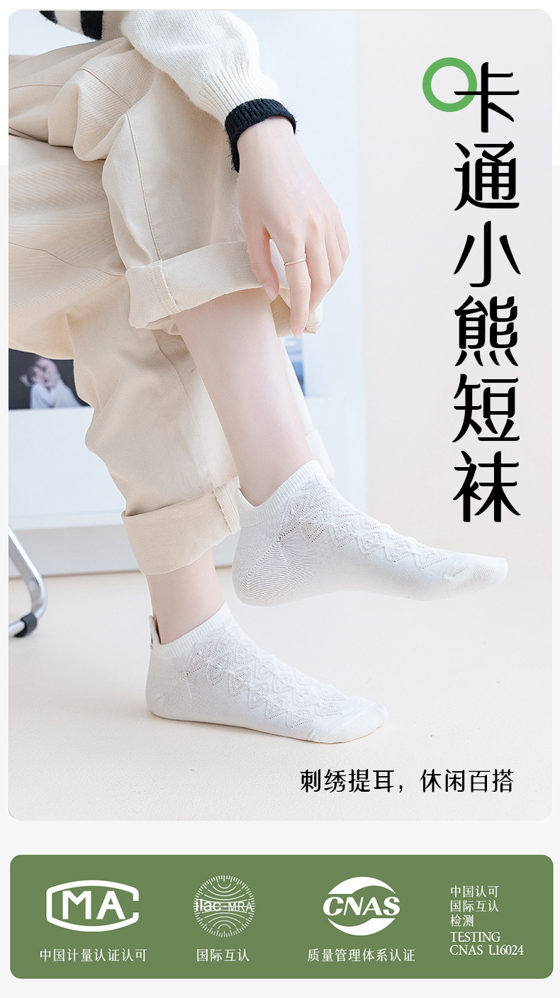 Las calcetines de barco de verano delgadas antibacterianas y respirables calcetines de algodón bordados osos invisibles Zhuangyan al por mayor