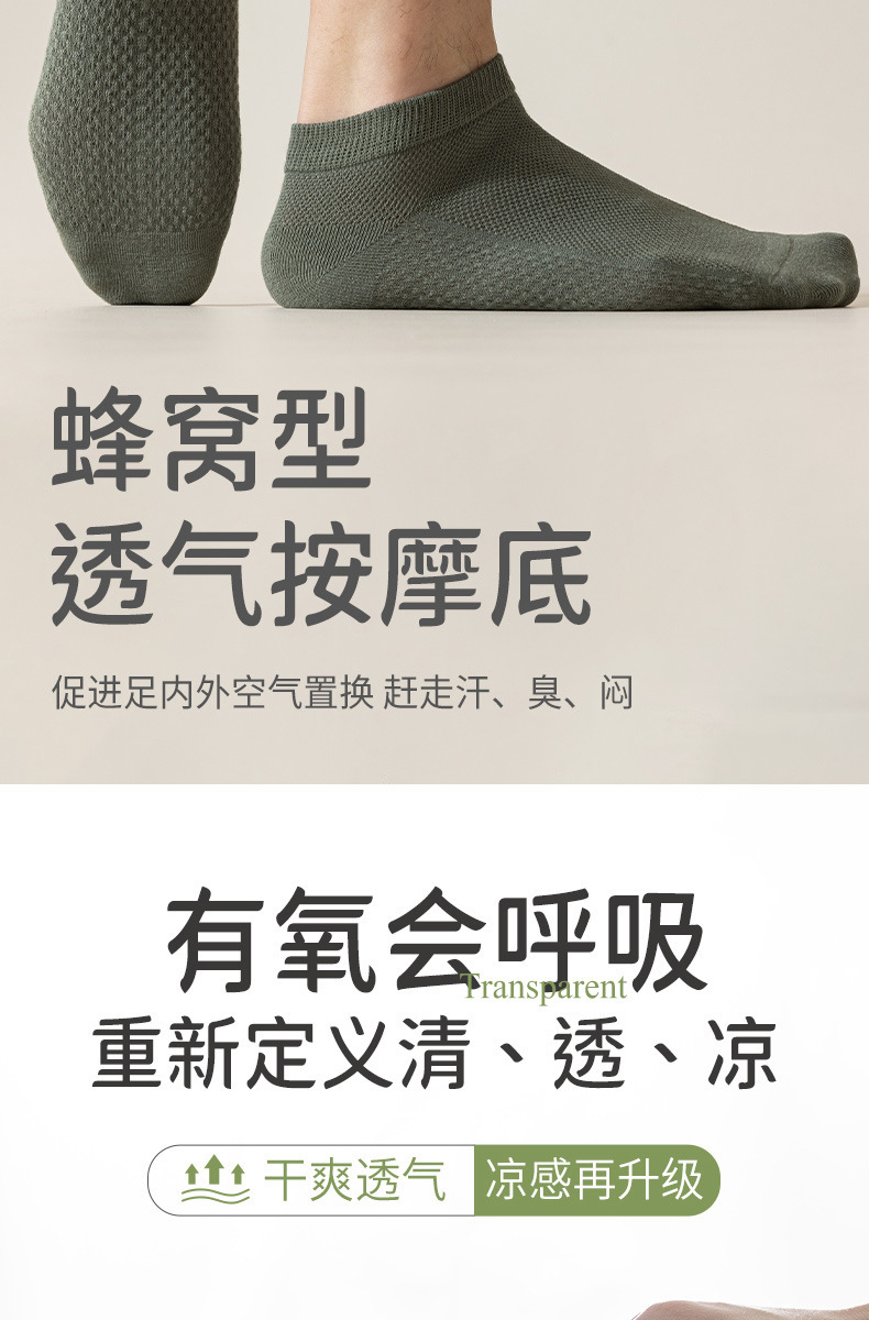Calcetines de malla para hombres antiolor sudor de verano calcetines de poliéster de algodón de masaje fondo antideslizante no se caen calcetines de hombre Zhuangyan