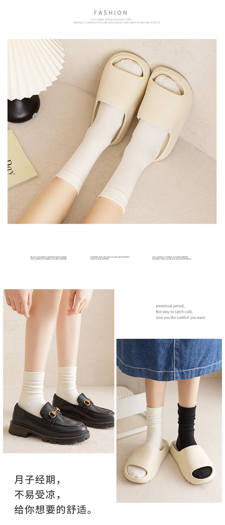 Medias negras y blancas de primavera y otoño ventiladas medias medias
