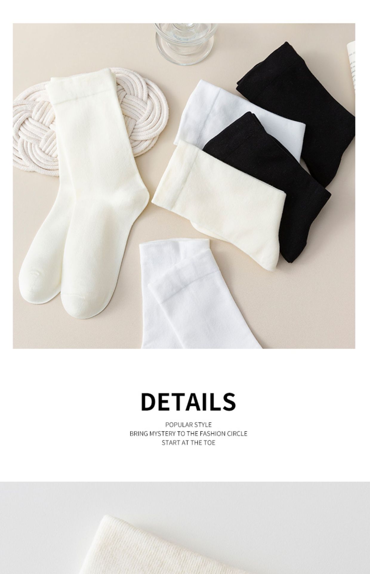 | Color | Blanco, blanco lechoso, negro, 3 pares de paquetes [2 blancos 1 negro], 3 pares de paquetes [2 blancos 1 blanco lechoso], 3 pares de paquetes [2 negros 1 blanco], 5 pares de paquetes [2 blancos 3 negros], 5 pares de paquetes [3 blancos lechosos 2 negros], 10 pares de paquetes [5 negros 5 blancos], 10 pares de paquetes [5 blancos blancos lechosos 5 blancos lechosos], 10 pares de paquetes [5 blancos blancos blancos blancos blancos lechosos 5 blancos lechosos], 10 pares de paquetes [5 negros 5 blancos lechosos 5 blancos lechosos 5 blancos lechosos], |