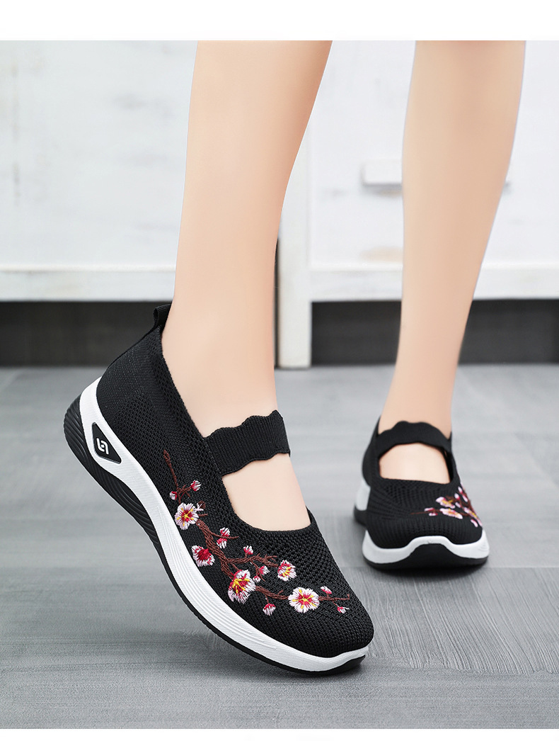 Zapatos mujer verano nuevo estilo zapatos de tela viejos de Beijing boca baja suela suave no cansado pie solo zapatos de un pie bordado zapatos de madre mujer