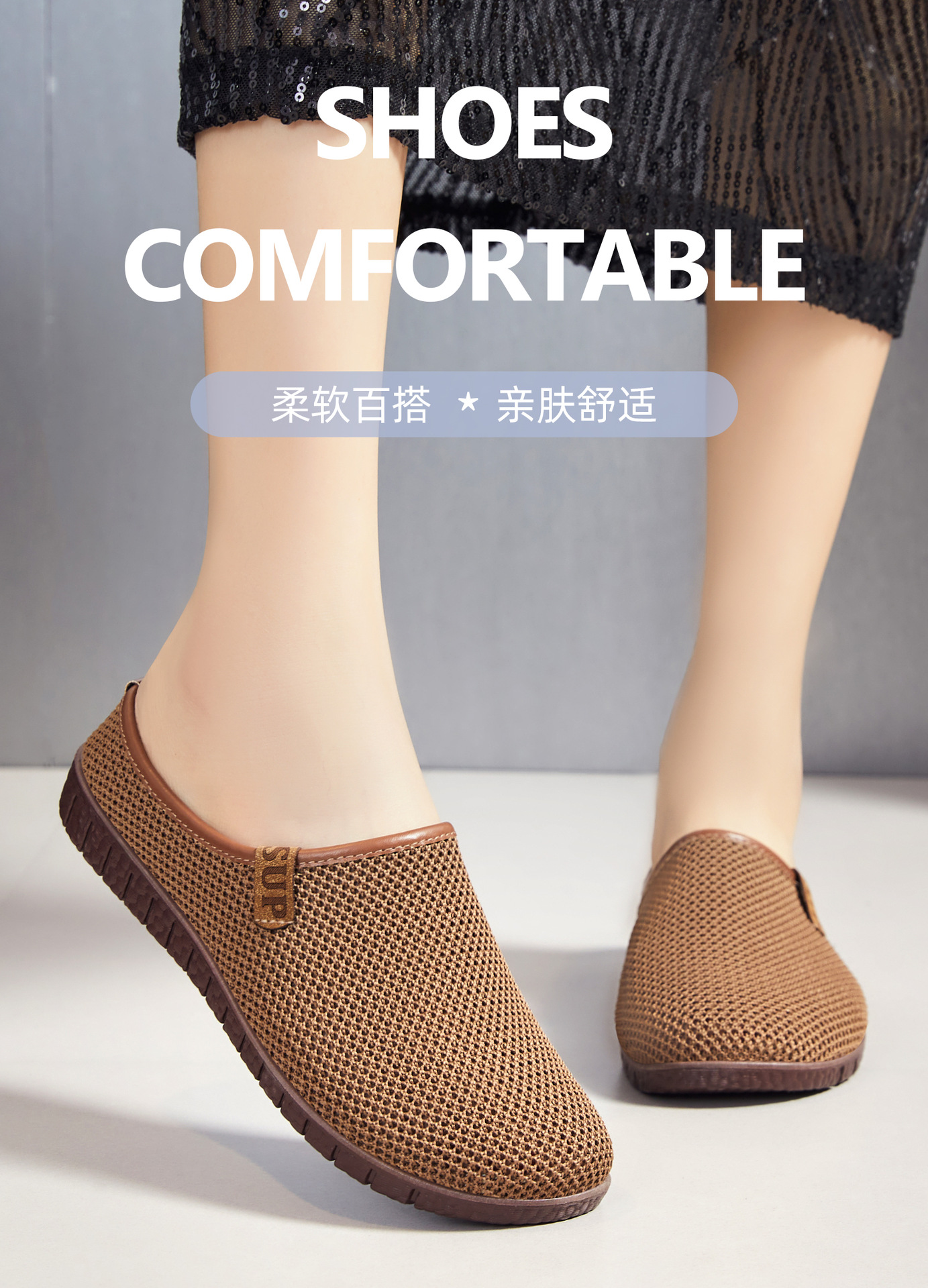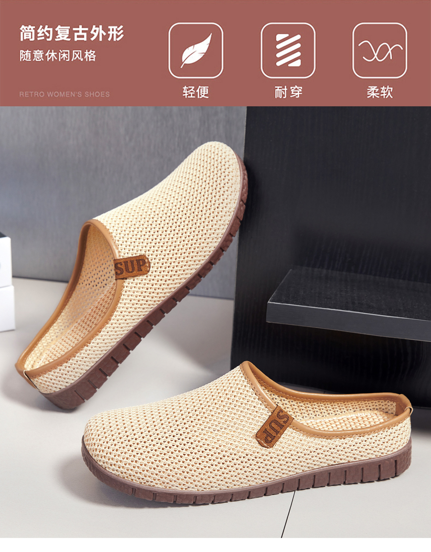 Zapatillas, ropa exterior de mujer, verano, nuevos zapatos de mujer, suela suave, pies no cansados, zapatos de mujer de un pie, zapatos de mujer de medio arrastre transfronterizos, mujeres