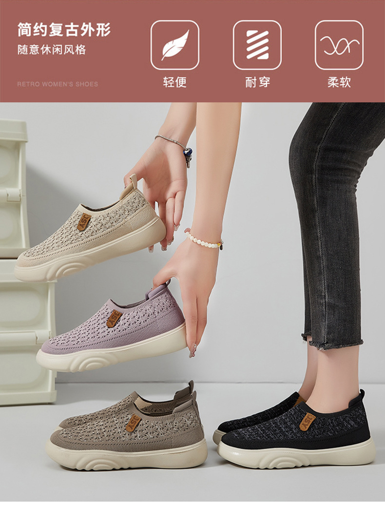 Zapatos de mujer con suela suave no cansen los pies, nuevos zapatos de tela de verano de Beijing viejos zapatos de madres de mediana edad y zapatos casuales.