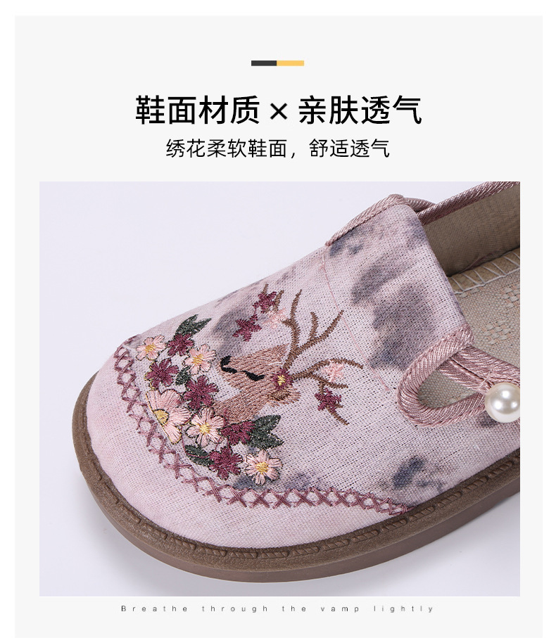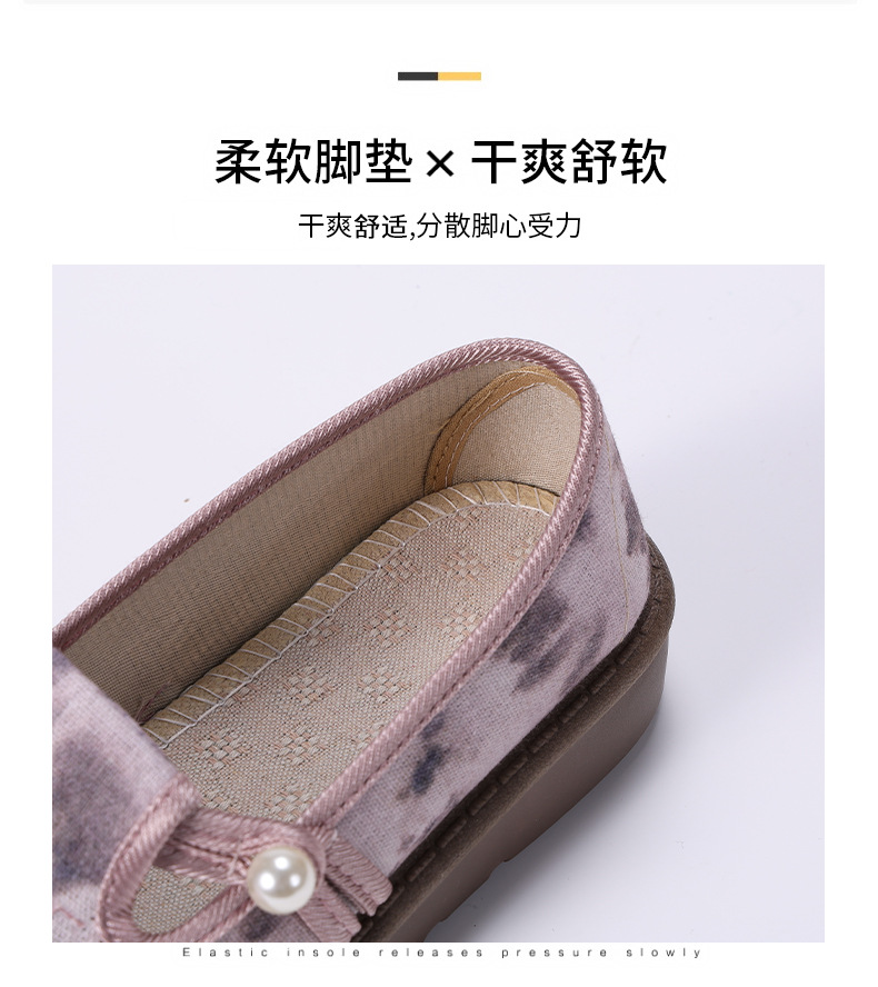 Zapatos de mujer con suela suave no cansan los pies de verano nuevos zapatos de tela viejos de Beijing zapatos de madres con un pie de zapatos de flores de flor de calzado chino