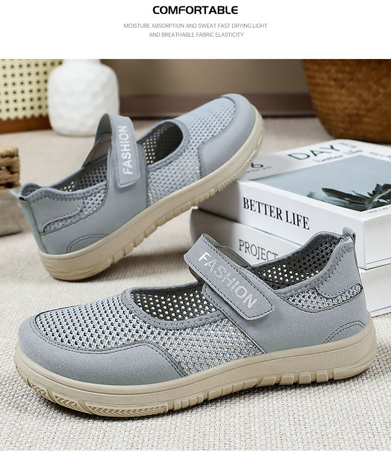 Zapatos mujer verano nuevo estilo malla hueca zapatos casuales transpirables zapatos de mujer transfronterizos suela blanda pies no cansados zapatos de madre al por mayor