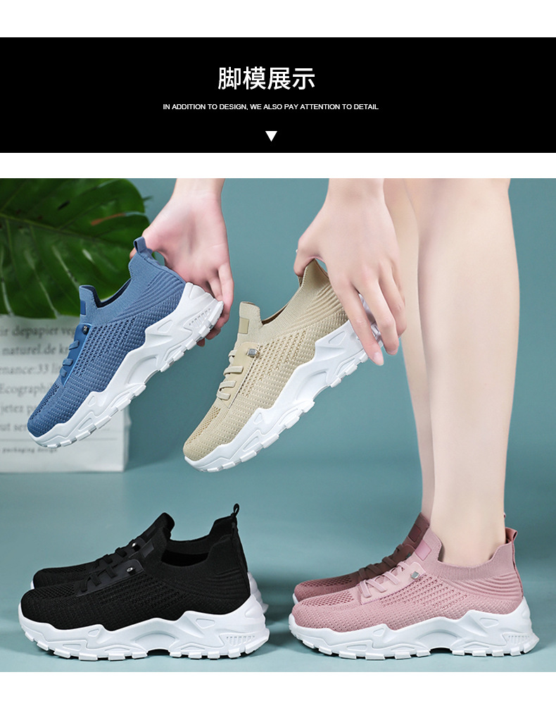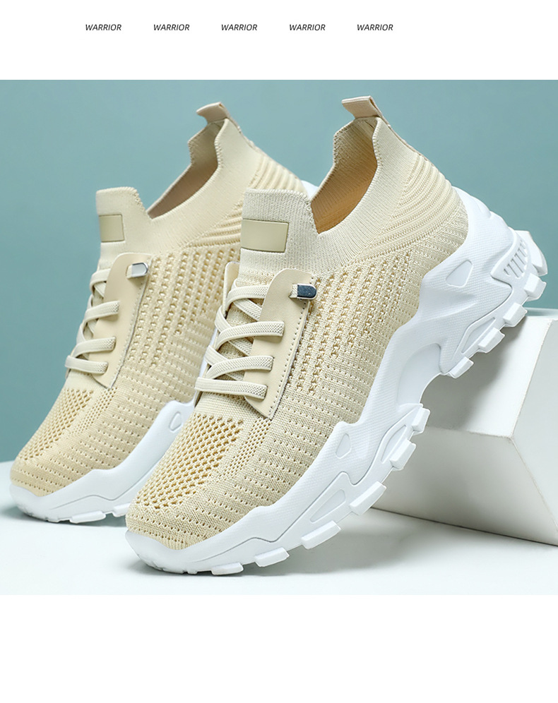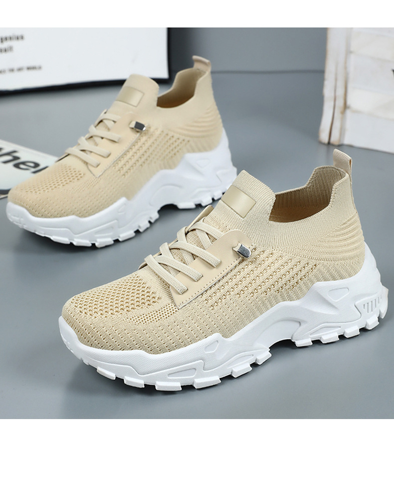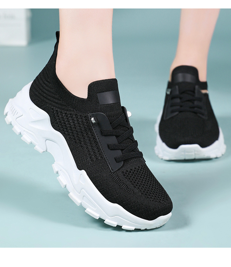 Zapatos de mujer Zapatos deportivos de verano Zapatos de jogging voladores transpirables Zapatos de malla cómodos de suela gruesa con cordones Zapatos individuales simples y versátiles