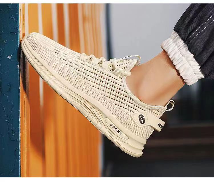 Otoño nuevo tipo de zapatos de hombre transpirables delgados estilo coreano de moda con zapatos casuales un pie de calzado vacío zapatos deportivos tejidos al por mayor