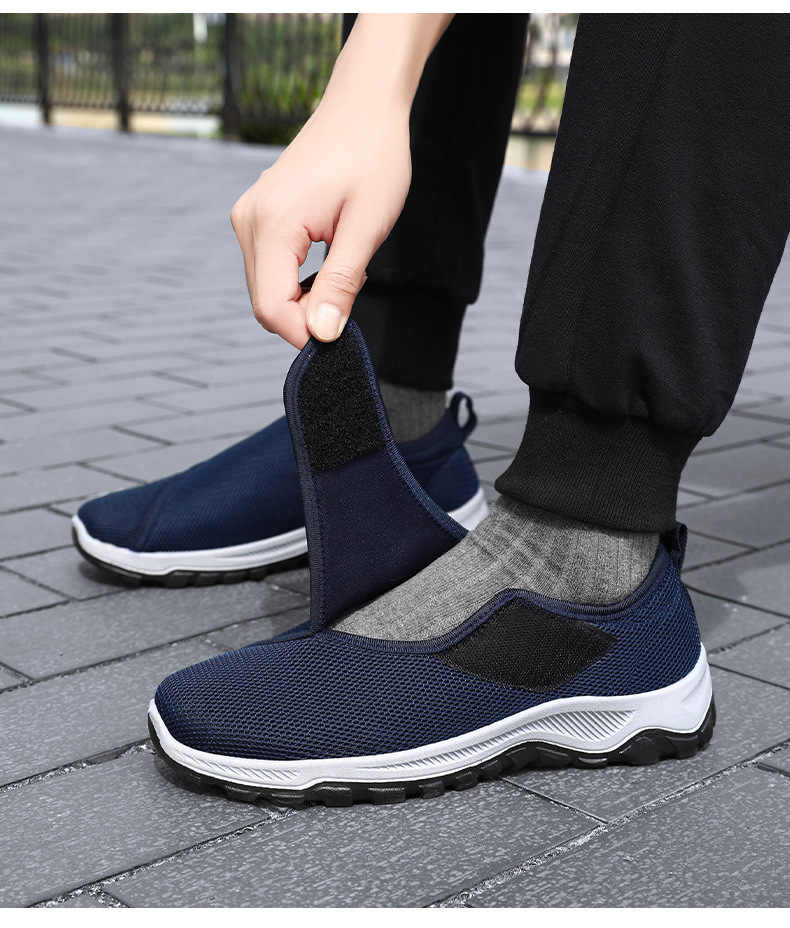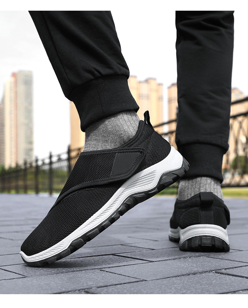 Zapatos de hombre primavera nuevos zapatos casuales transpirables de malla convenientes velcro zapatos de edad avanzada pareja zapatos de caminar