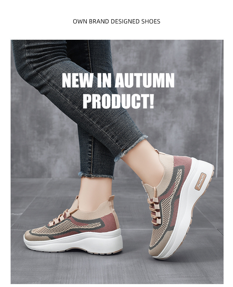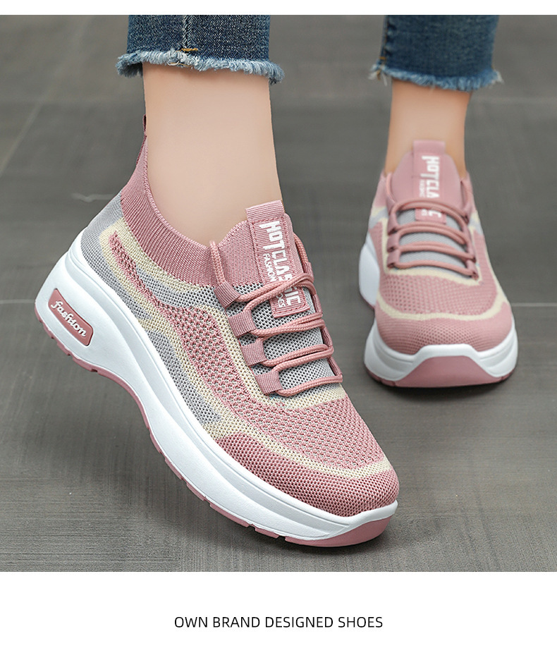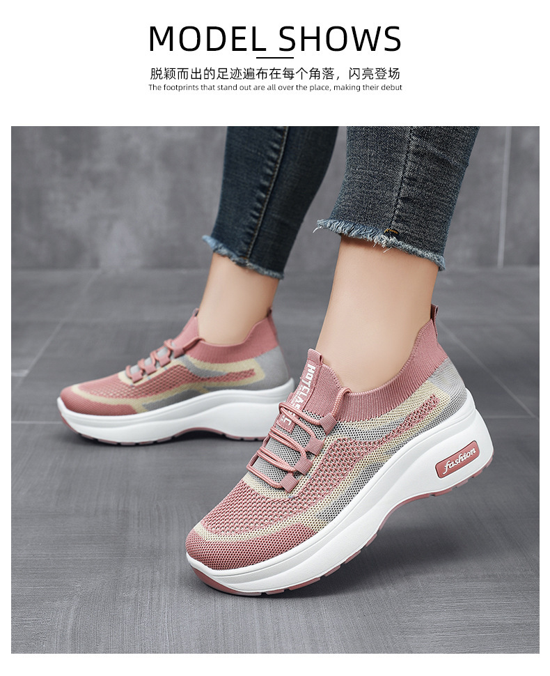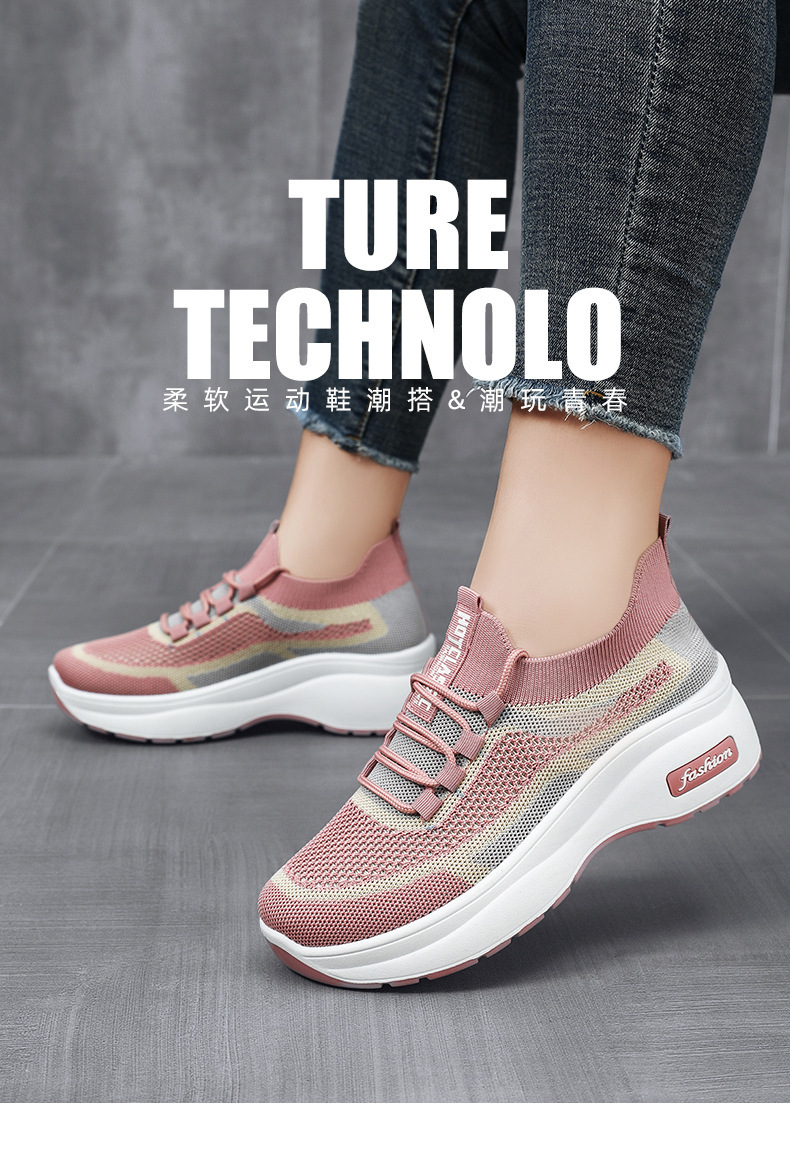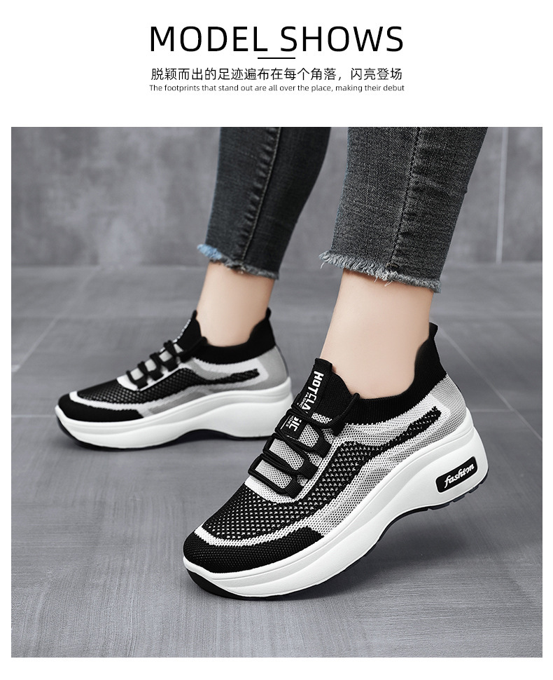 Zapatos de mujer transfronterizos zapatos de plataforma cómodos transpirables cuatro estaciones volando zapatos tejidos zapatos de moda calcetines de todo fósforo zapatos de fondo grueso zapatos casuales clásicos