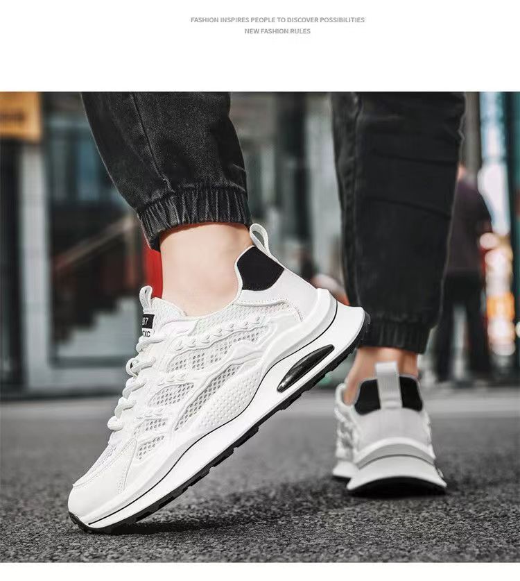 Calzado deportivo modelos de primavera y otoño para hombres, malla transpirable, zapatos blancos de moda para estudiantes, zapatos cómodos y ligeros para hombres, comercio exterior al por mayor