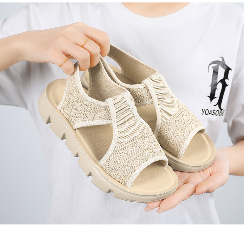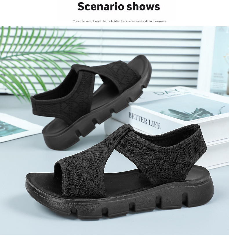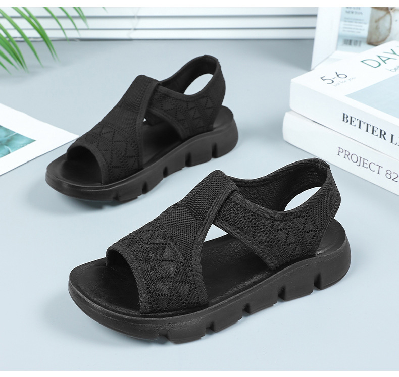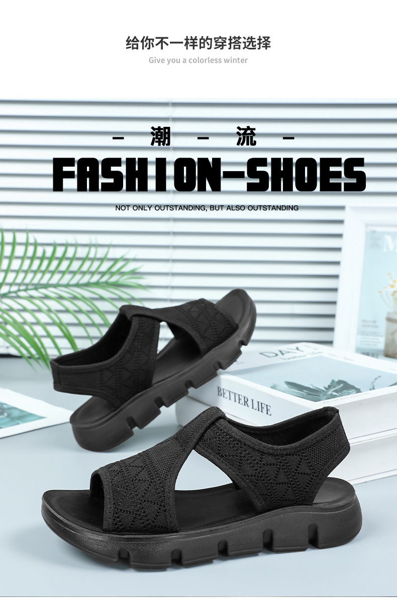 Sandalias para mujer, verano, transpirable y no cansado, suela gruesa, casual, transfronterizo, tallas grandes, zapatos de mujer, medias zapatillas, sandalias planas de malla