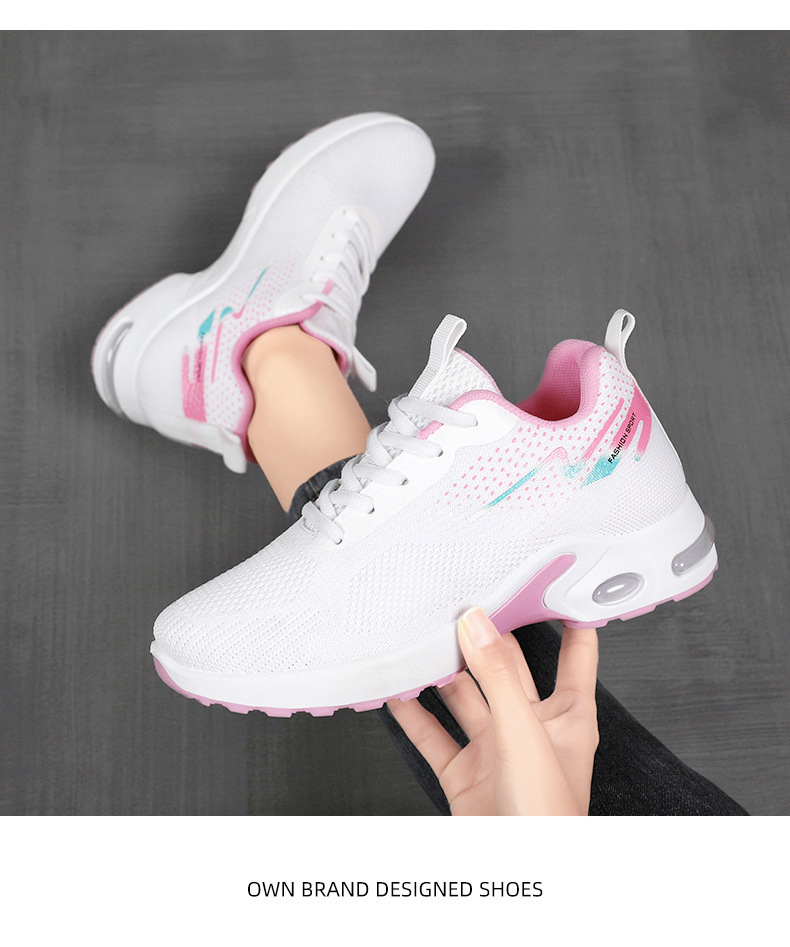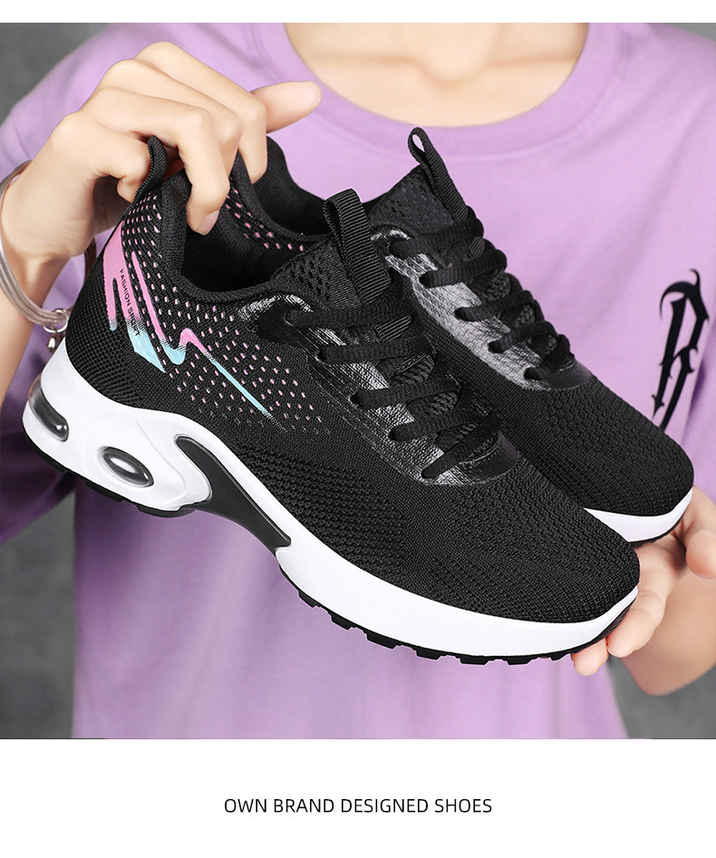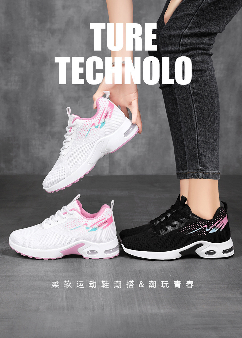 Zapatos mujer 2025 verano nuevo estilo cojín de aire deportes tejido volador zapatos casuales fabricantes suela suave transpirable comercio exterior zapatos transpirables mujeres