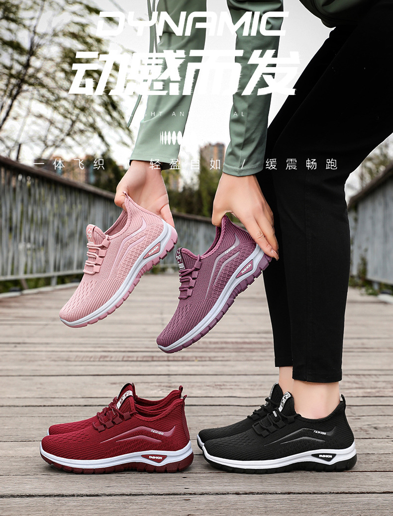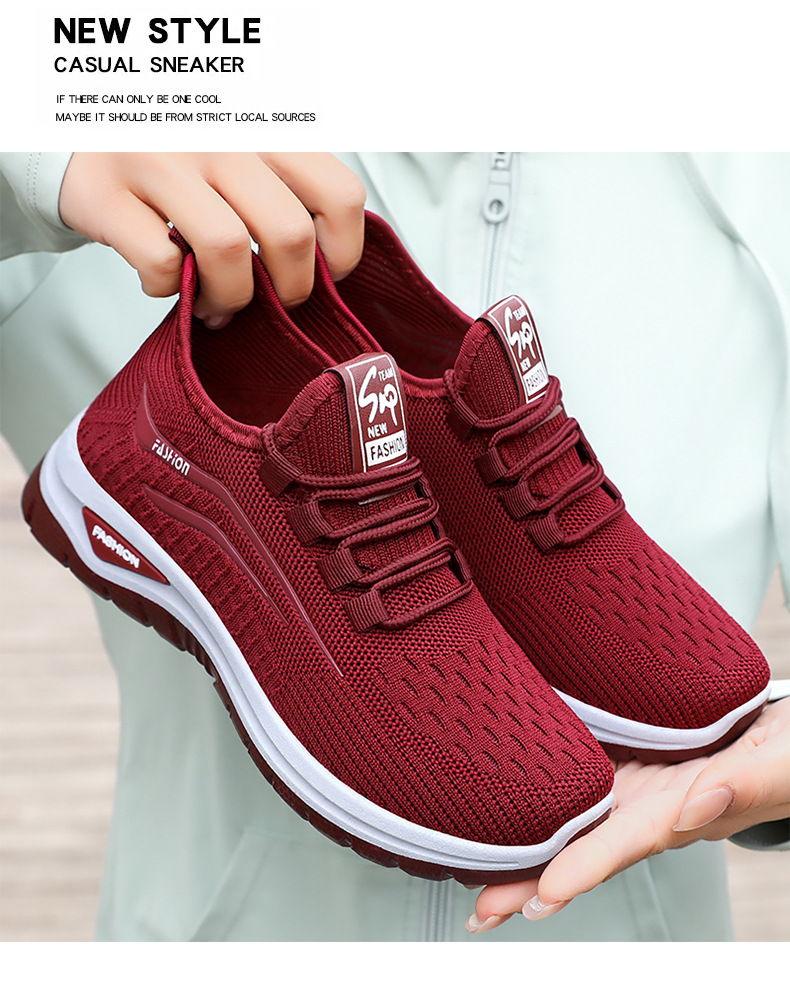 Zapatos zapatos casuales transpirables de verano para mujer, venta al por mayor transfronteriza, zapatos de mujer con cordones tejidos voladores, suela suave, zapatos para correr sin cansarse