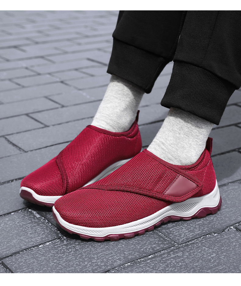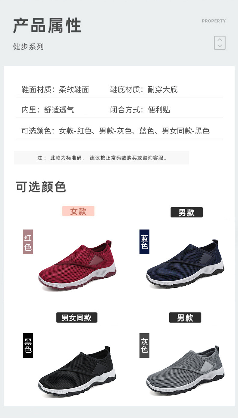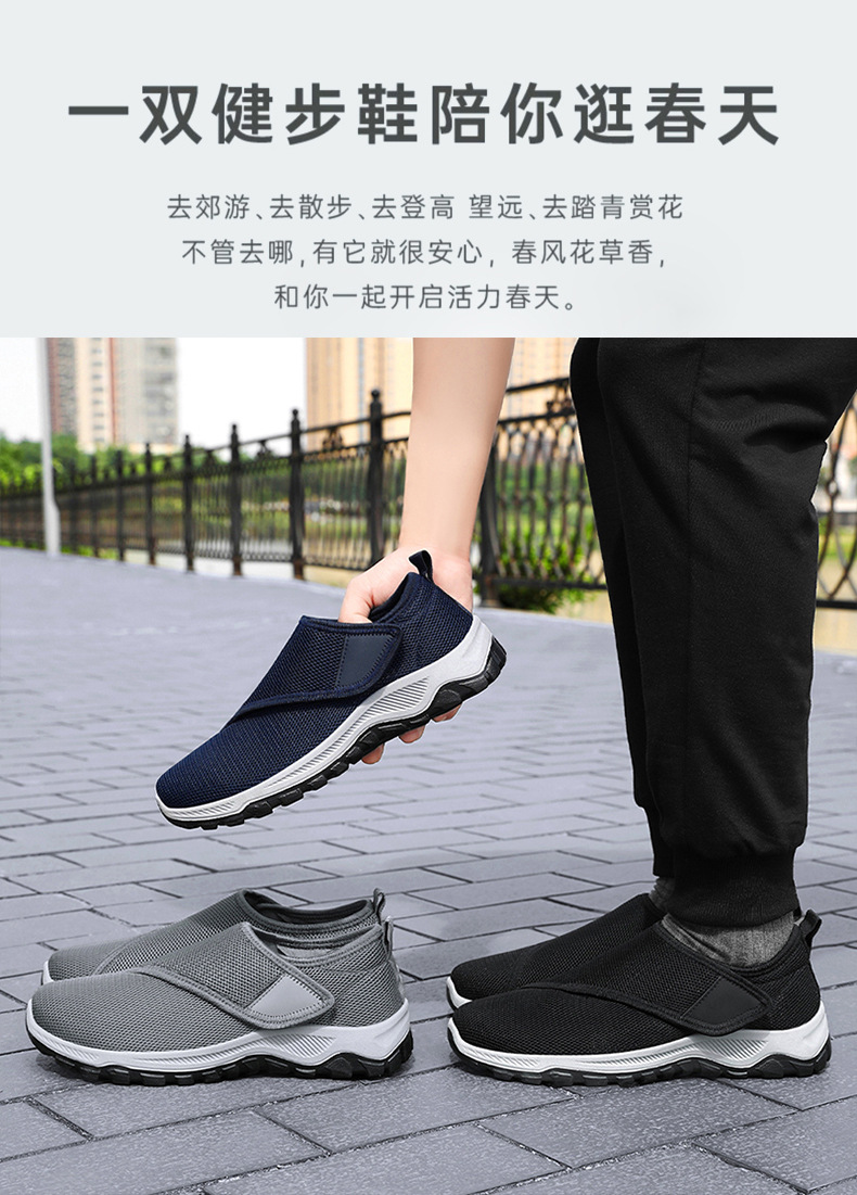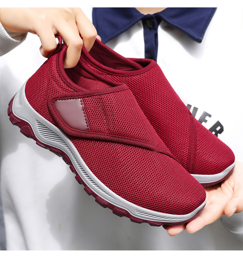 Zapatos de primavera de mujer, velcro, zapatos de caminar, parejas de mediana edad, zapatos de malla transpirables, suela suave no cansará los pies