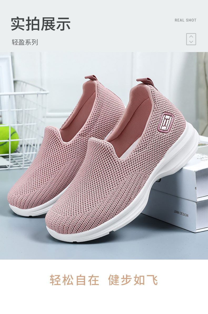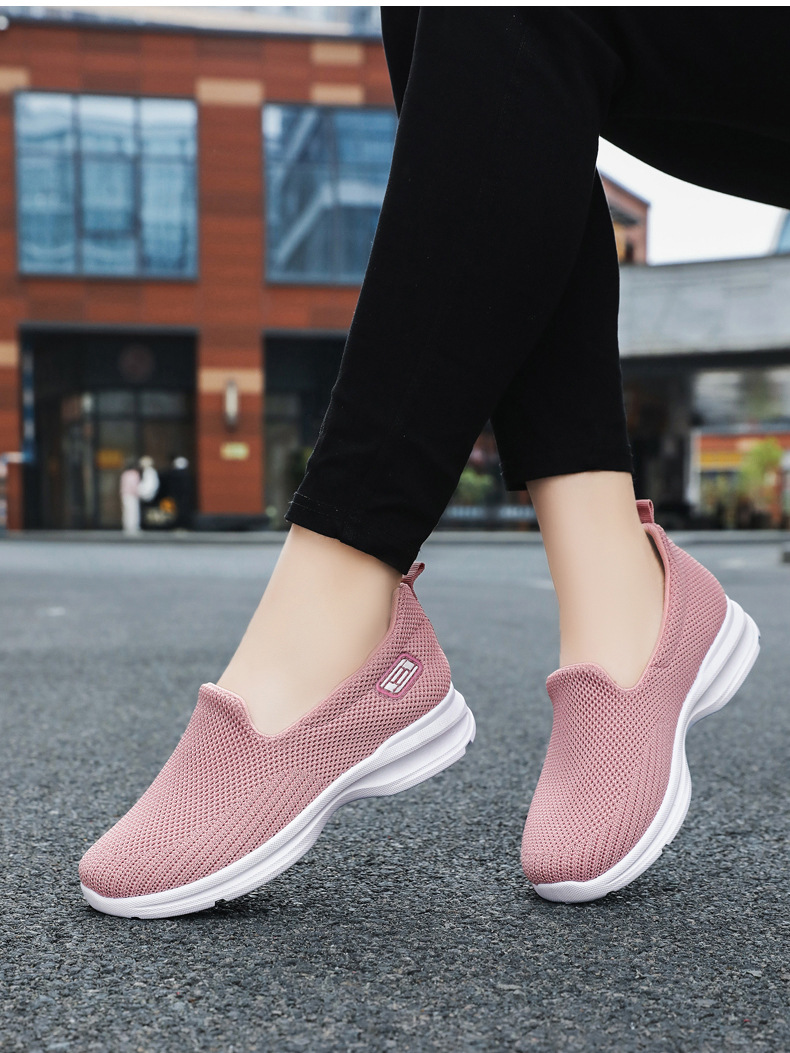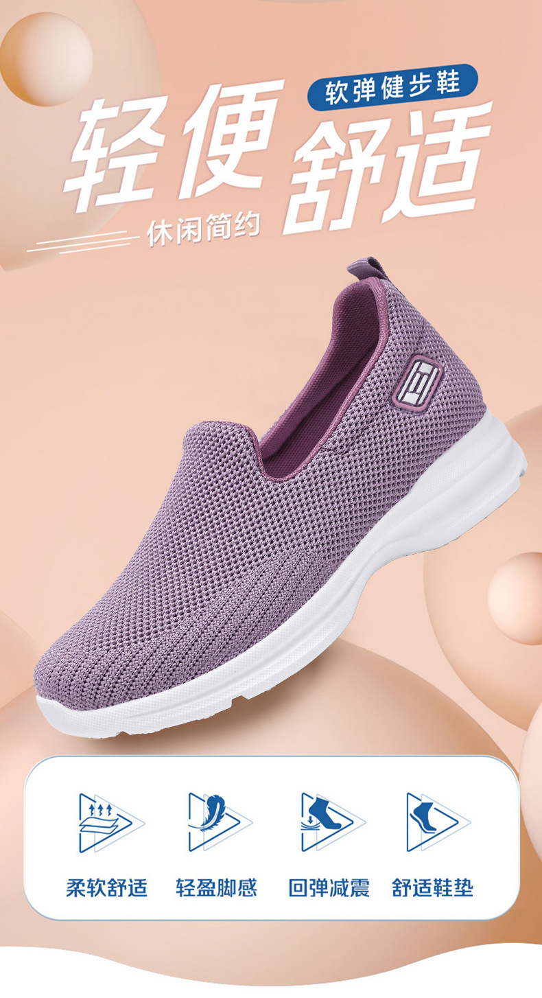 Zapatos de mujer con suela suave que no cansan los pies, zapatos de tela estilo Pekín antiguo, boca poco profunda, color sólido, zapatos casuales sin cordones, zapatos para madres de mediana edad y mayores.