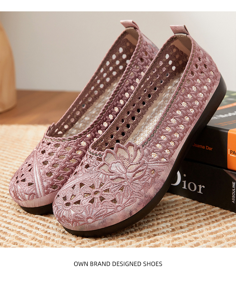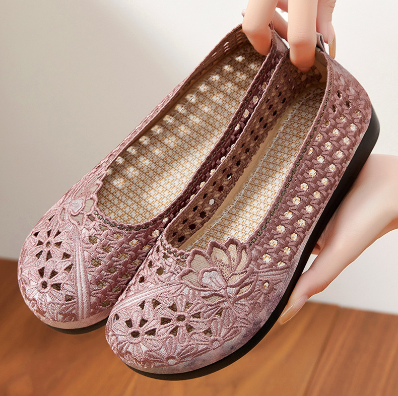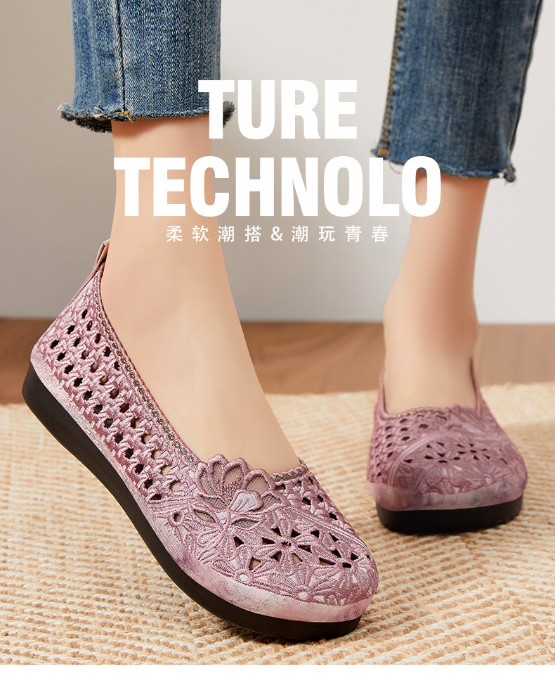 Zapatos de mujer con suela suave no cansan los pies de verano nuevos zapatos de tela viejos de Beijing zapatos de madres con un pie de zapatos de flores de flor de calzado chino