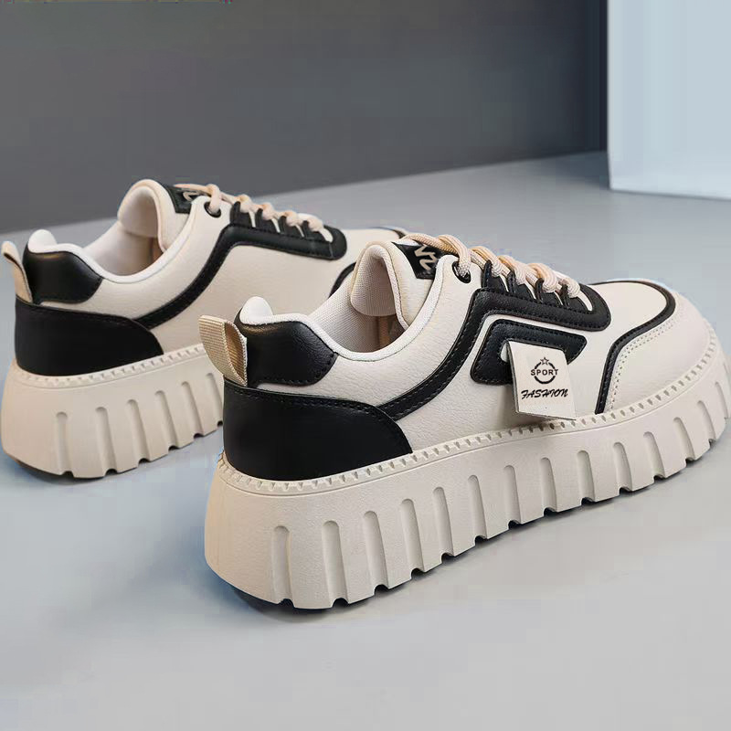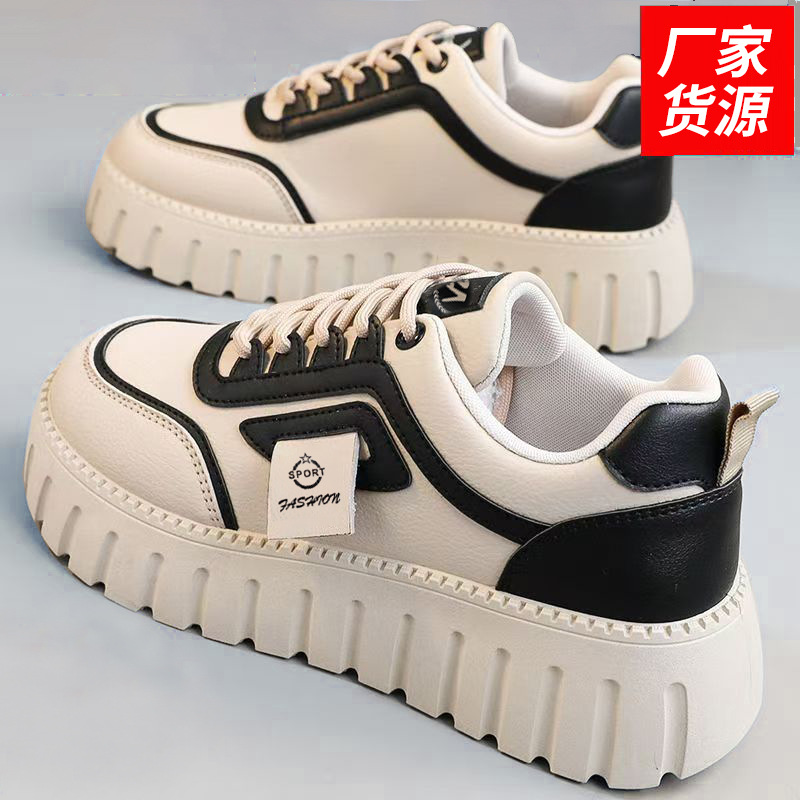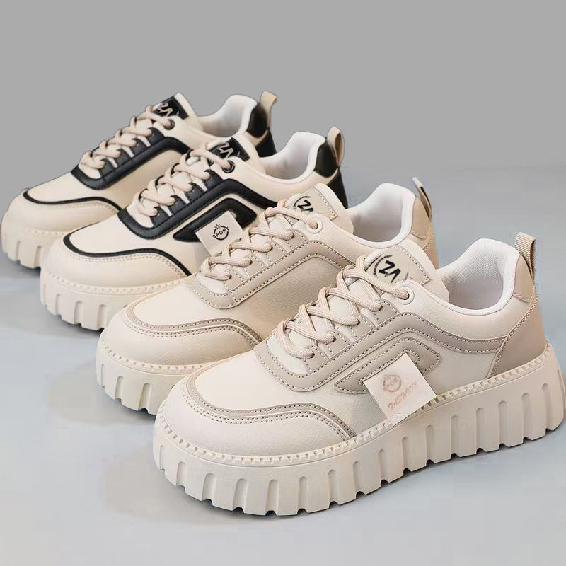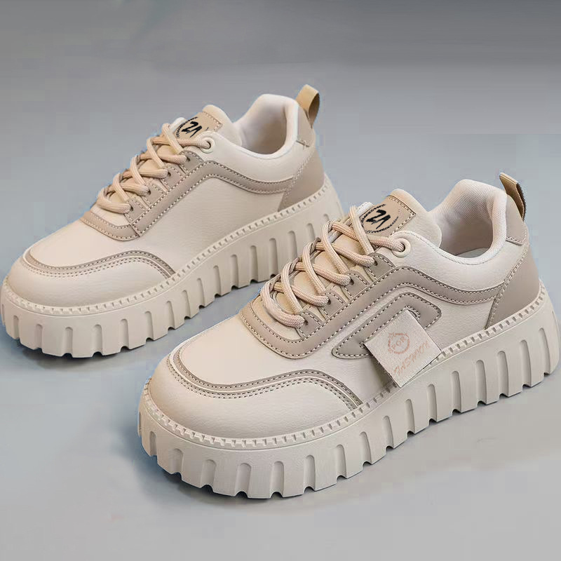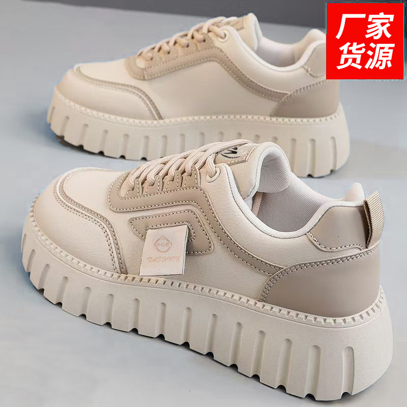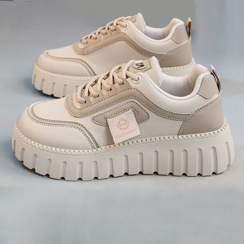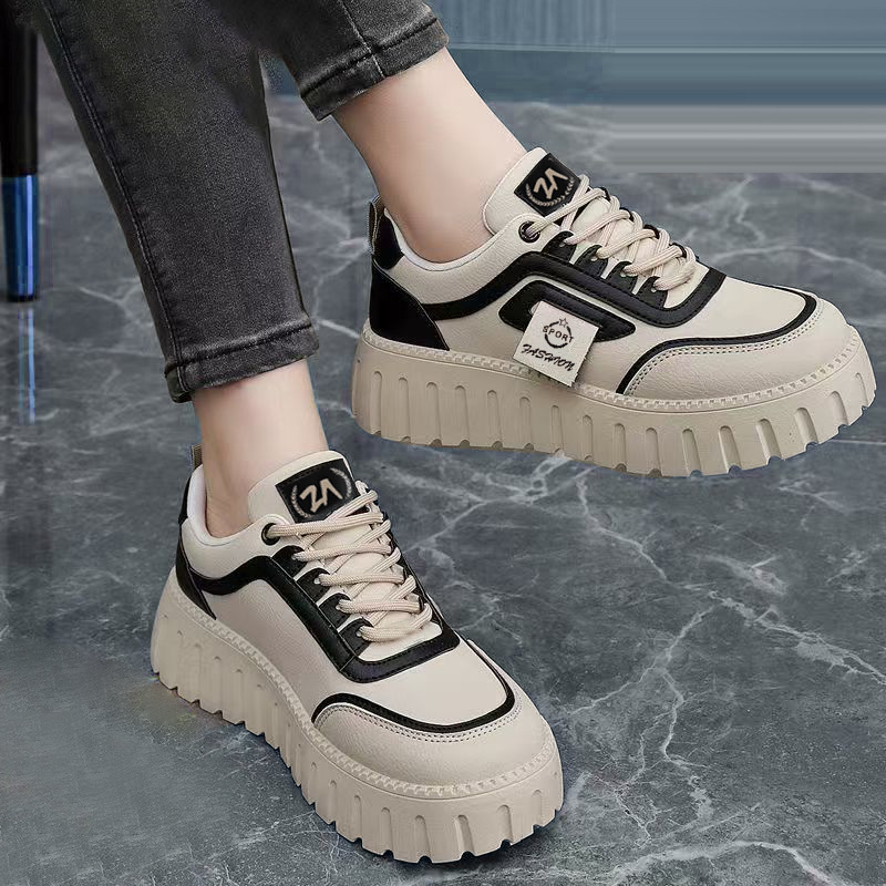Zapatos de mujer primavera de moda, cuero de fondo grueso, zapatos casuales de moda coreana, zapatos de skate transpirables ligeros para mujeres.