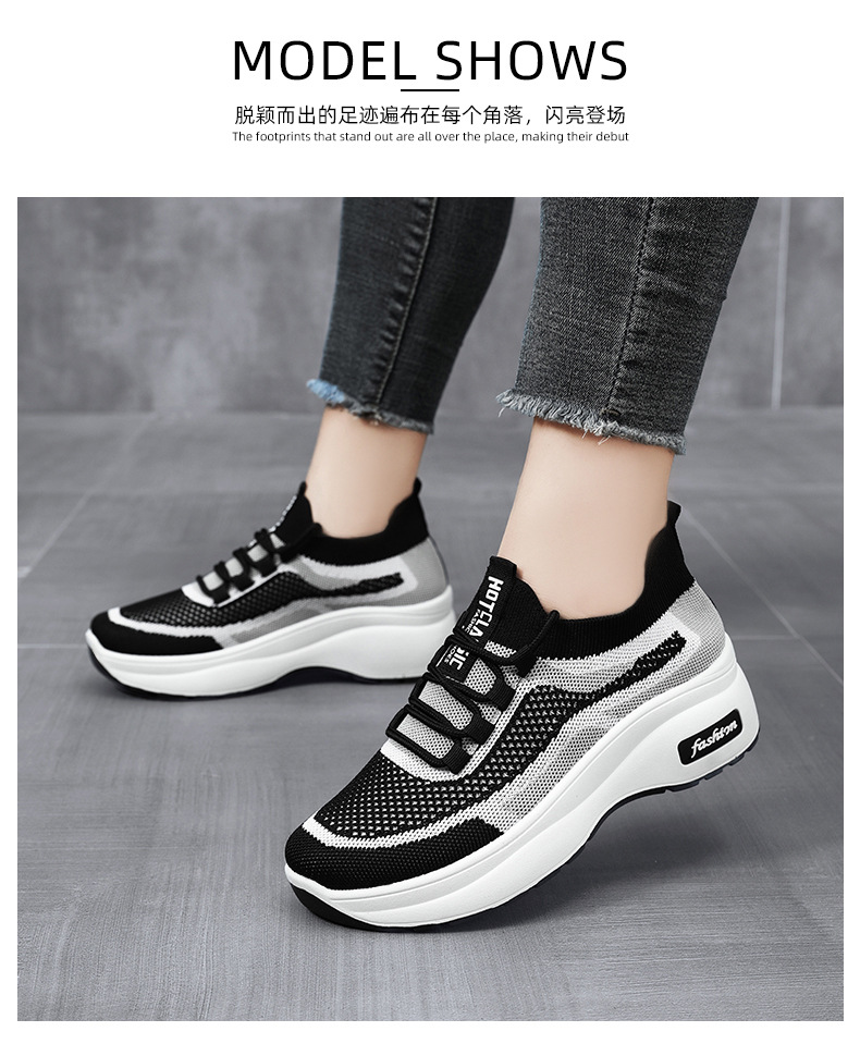 Zapatos de mamá 2024 primavera zapatos de mujer casuales de suela gruesa zapatos de aumento de altura directos de fábrica zapatos transpirables de malla para mujeres