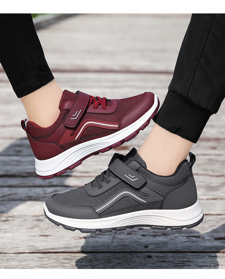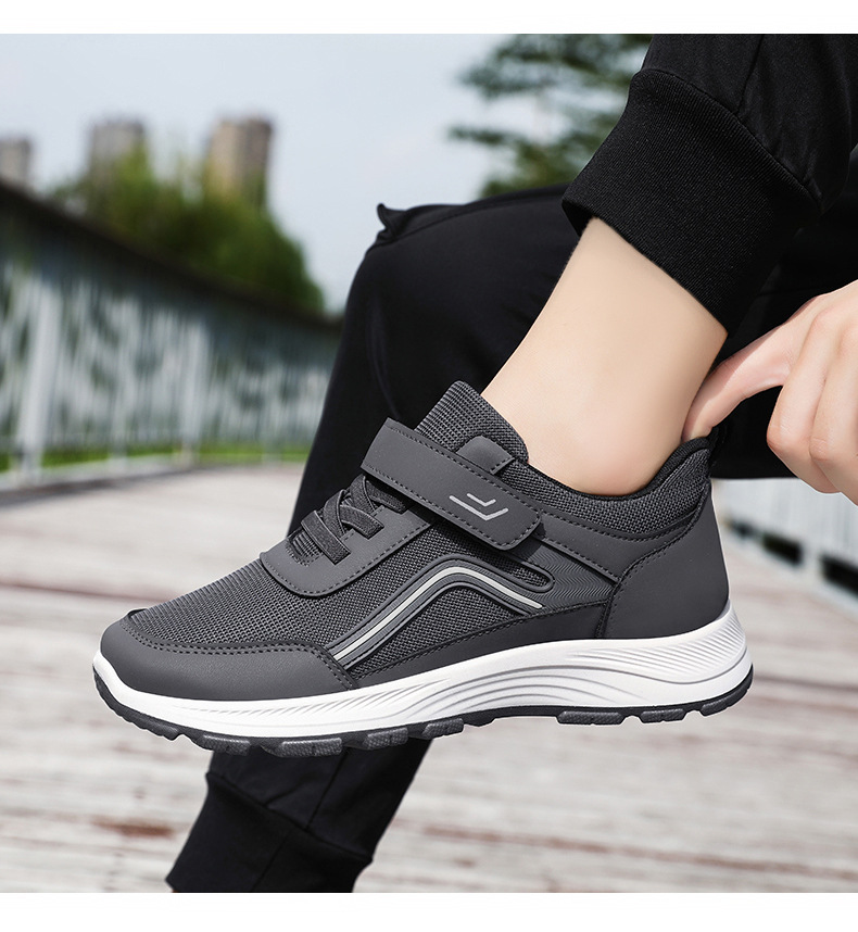 Calzado deportivo 2025 zapatos deportivos de verano para ancianos al por mayor, estilo de pareja, tejido volador, zapatos casuales cómodos y transpirables para caminar