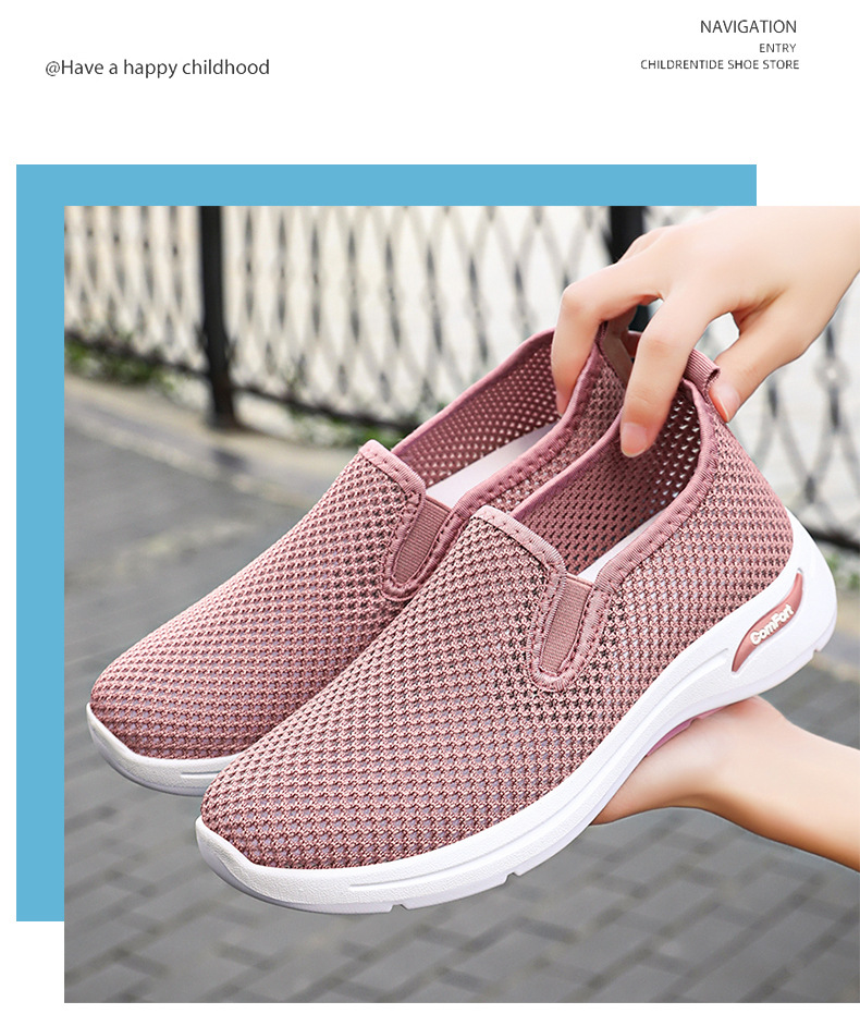 Zapatos de mujer de verano con suela suave no cansada zapatos de madre con una malla vacía transpirable, zapatos casuales cómodos para mujeres