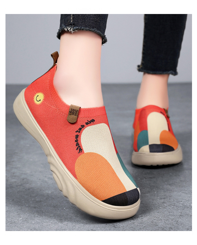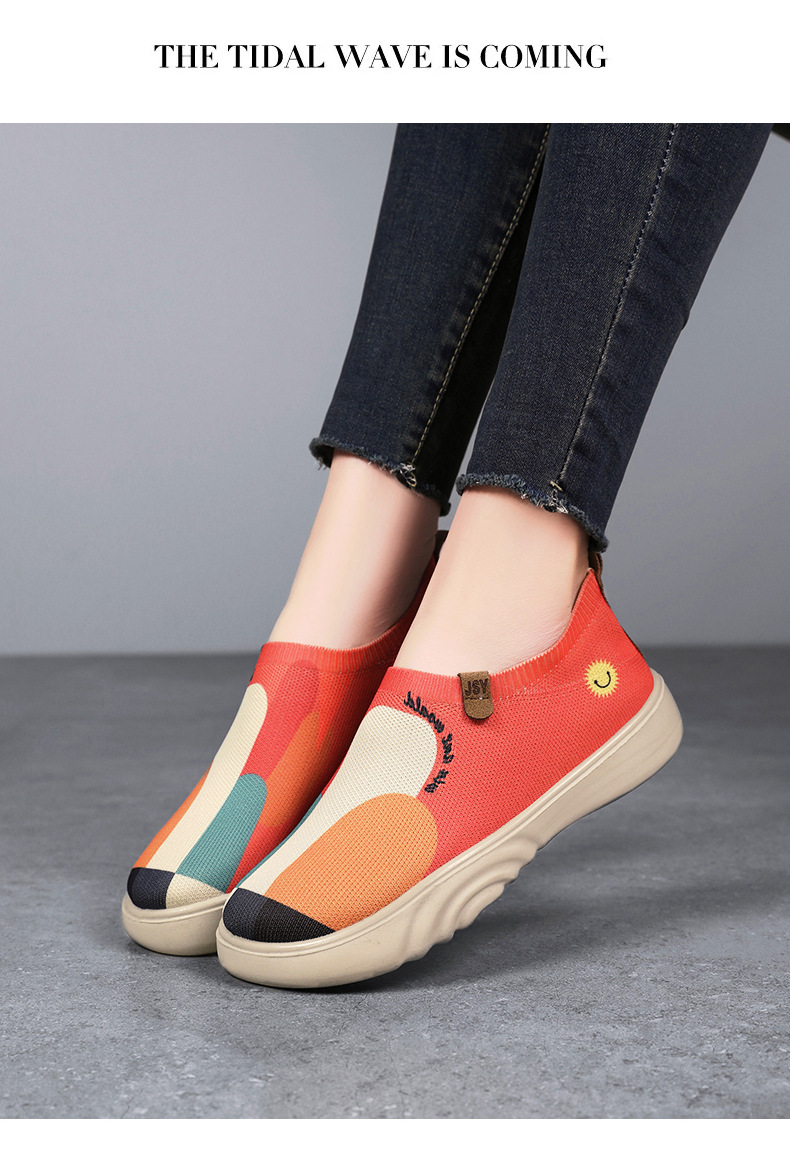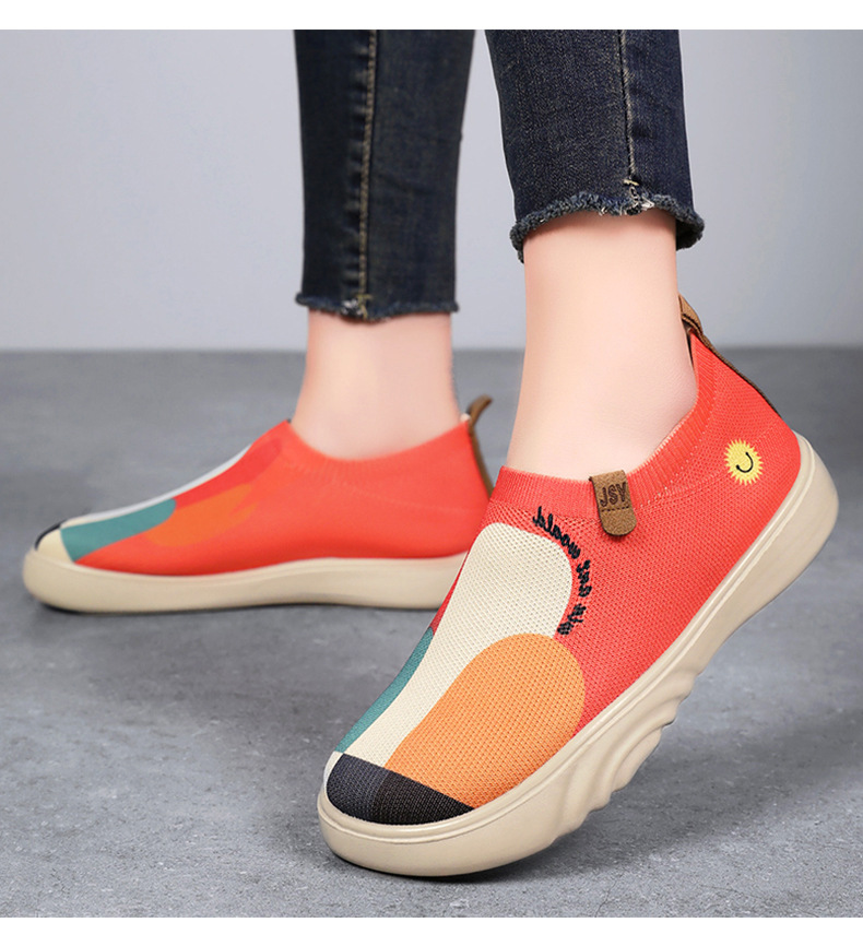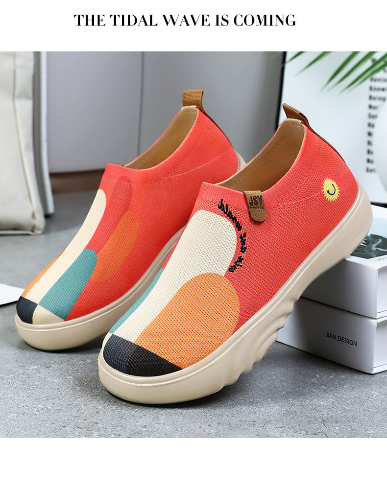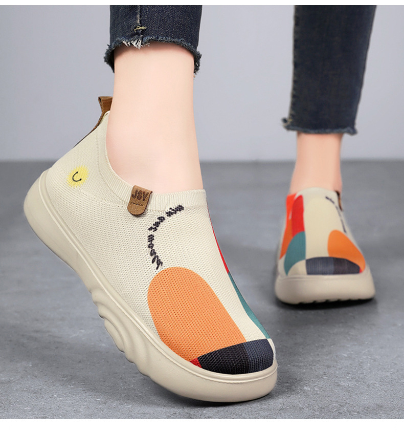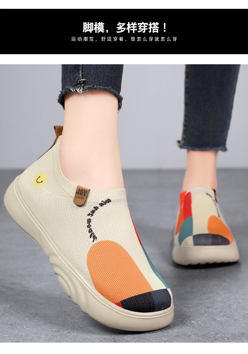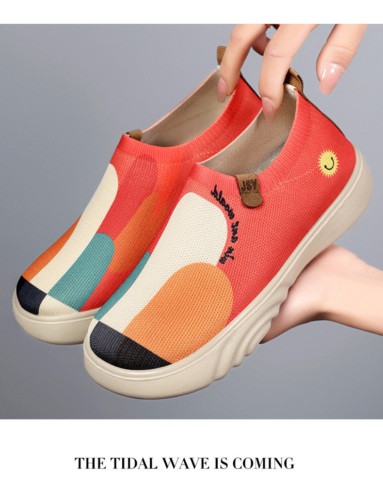 Zapatos de mujer verano nuevo estilo casual zapatos de tela viejos de Beijing zapatos de mujer pintados transfronterizos zapatos de suela gruesa zapatos transpirables de tejido volador ligero